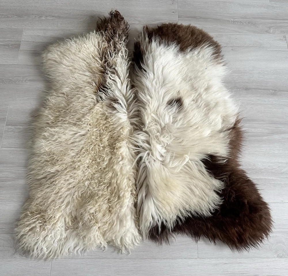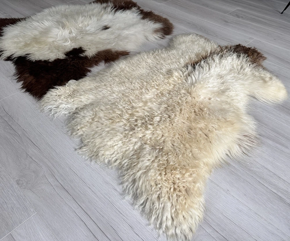 Set Of 2,%100 Natural Sheepskin Rug, Natural Color,Sheepskin Pelt,camel.white.