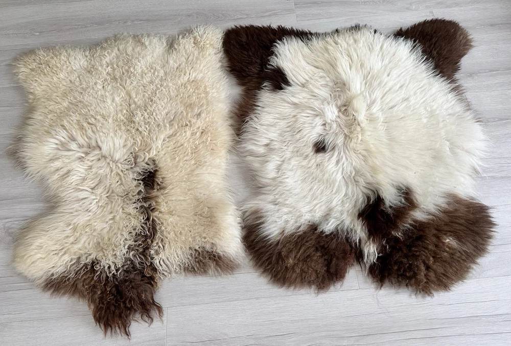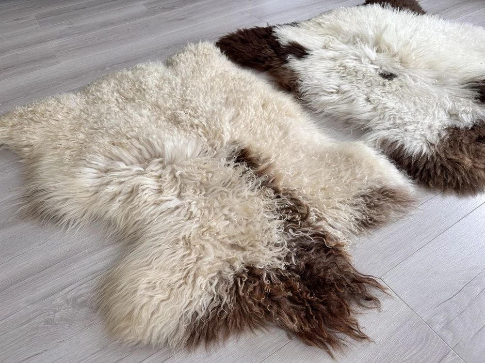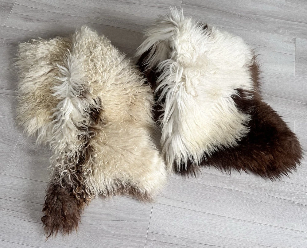 1. Received beautiful sheepskin with lovely dark colors and patches of lighter toned. Received shipment promptly and I went on to purchase another sheepskin for my mother