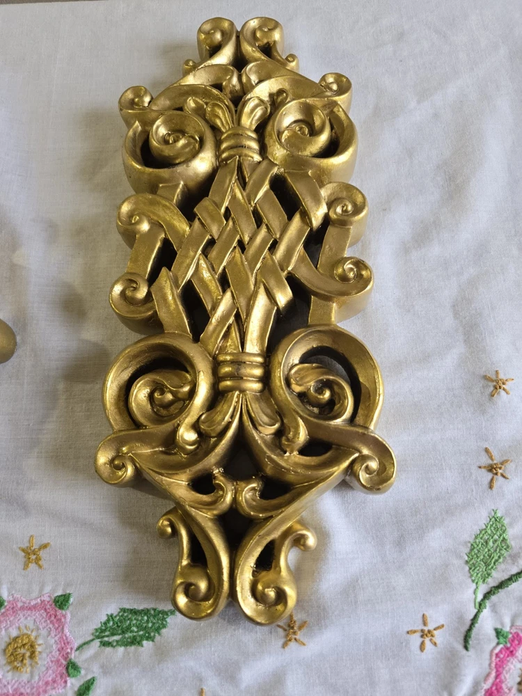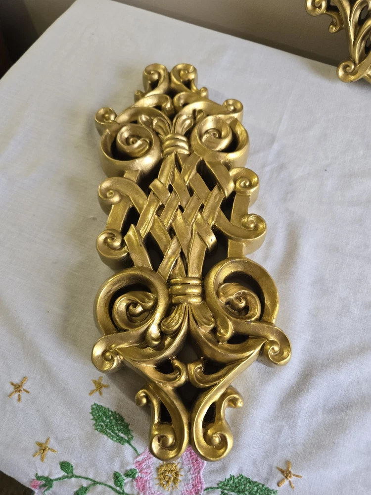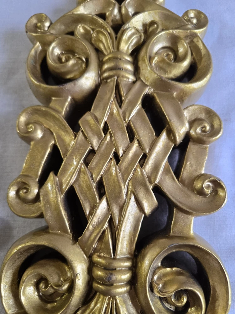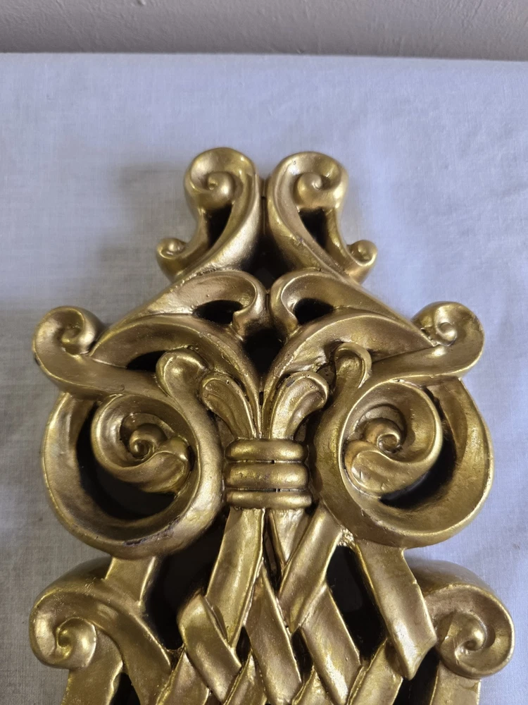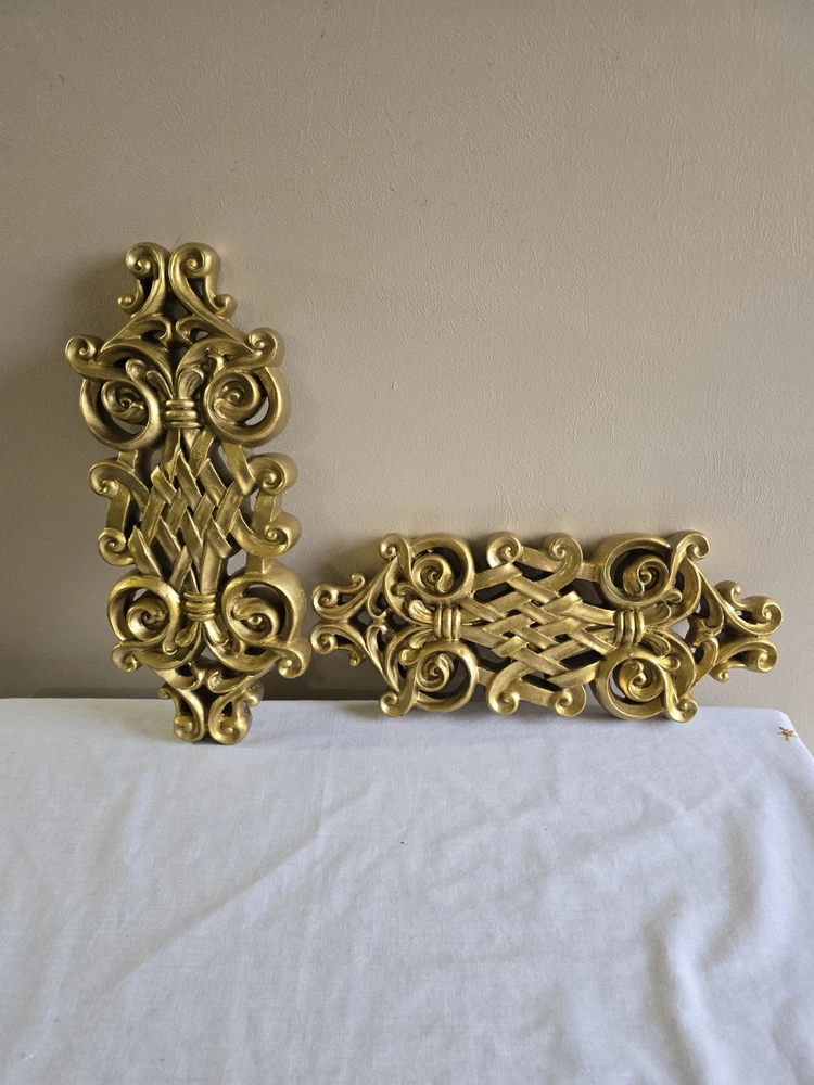 Set Of 2 Handpainted Wall Hanging Gold Scrolls Shabby French Country Cottage