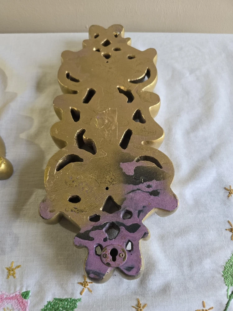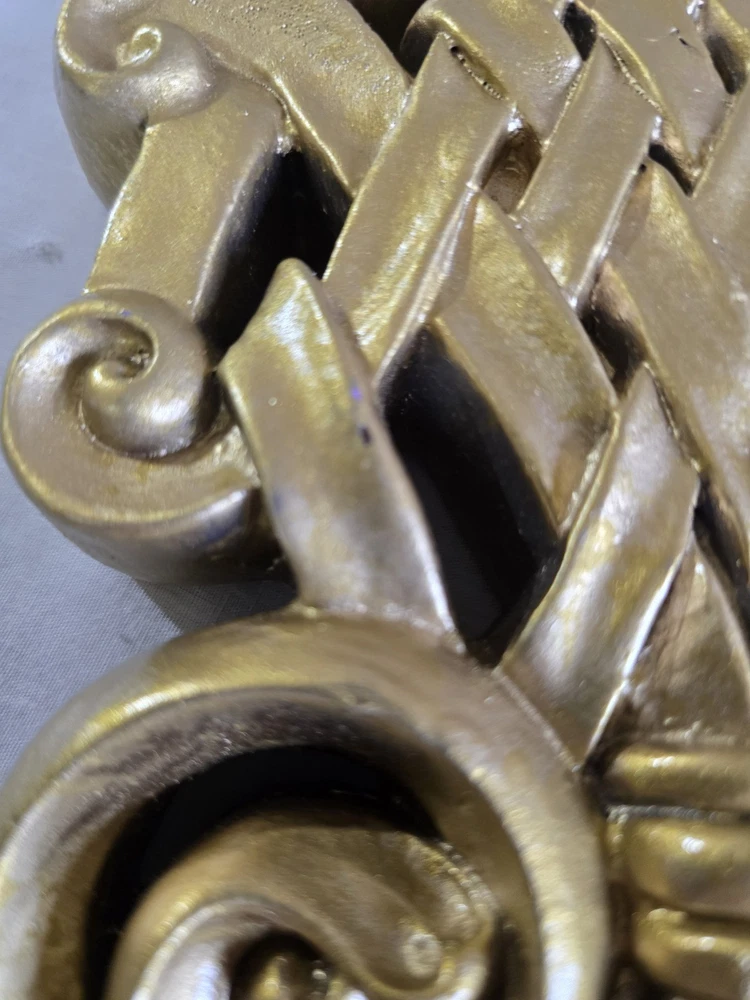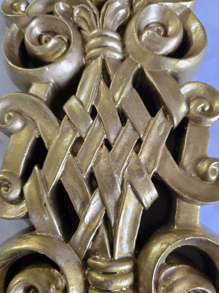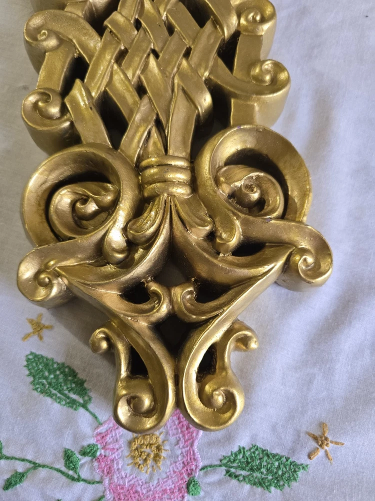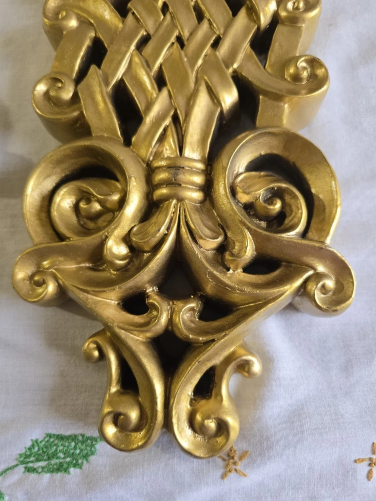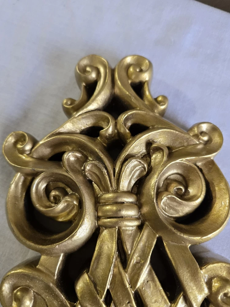 Set Of 2 Handpainted Wall Hanging Gold Scrolls Shabby French Country Cottage