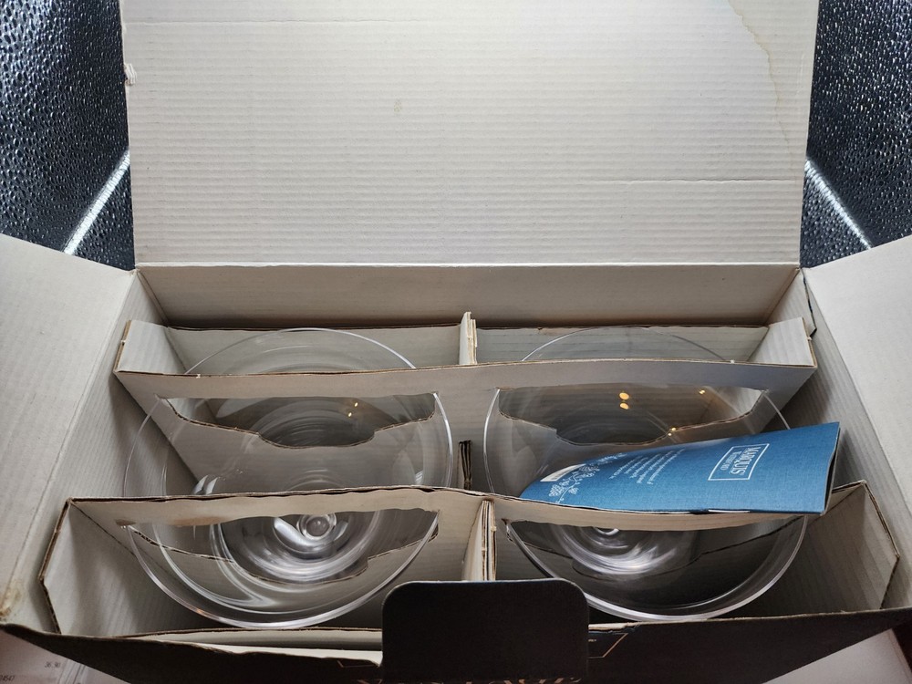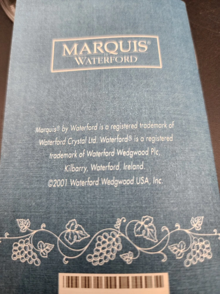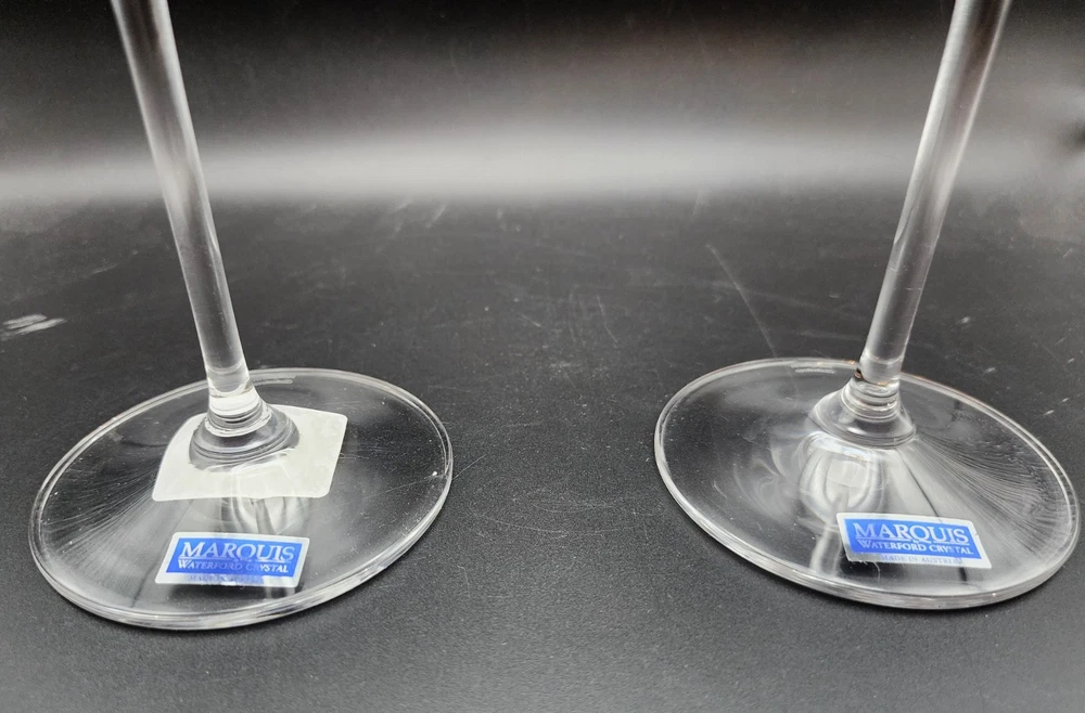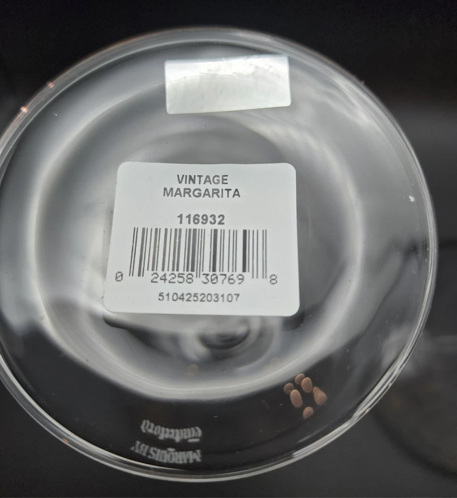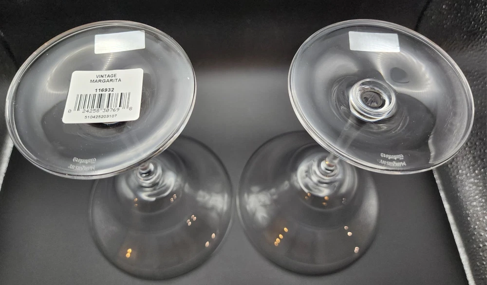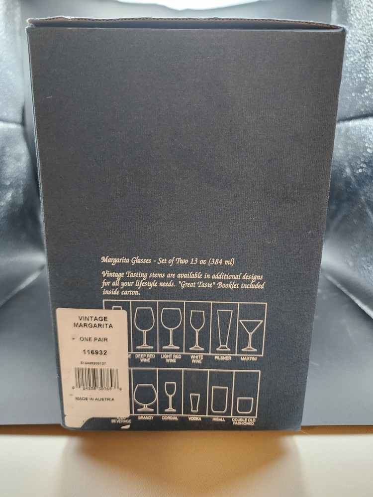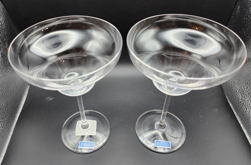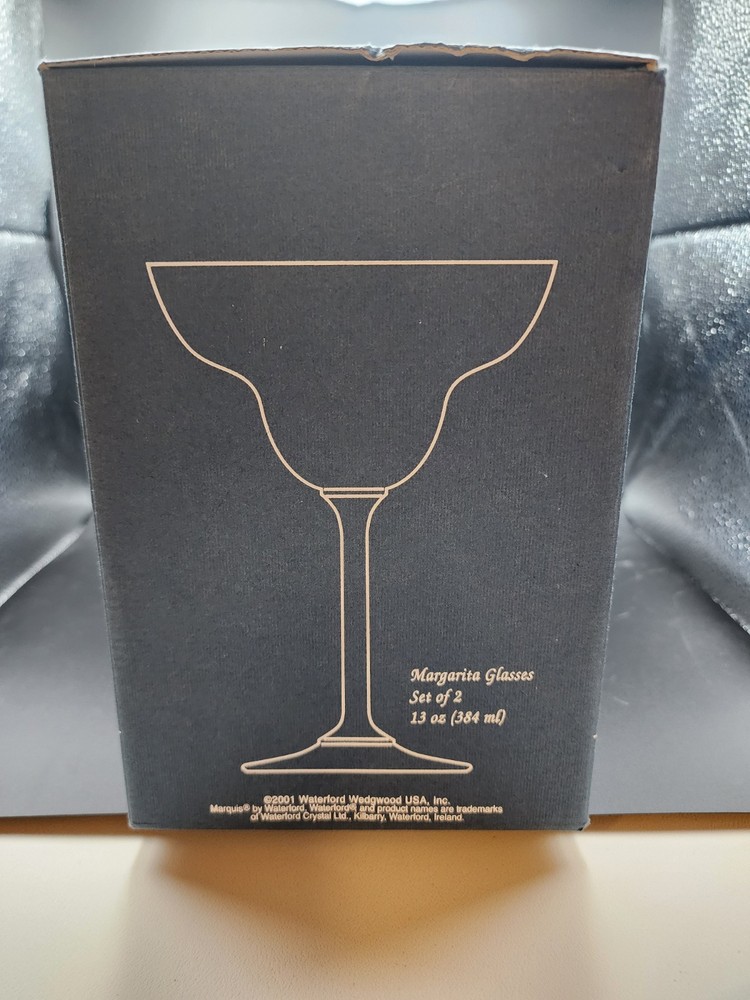 Set Of 2 new in box Marquis By Waterford Vintage Tasting Collection crystal margarita glasses Made in Austria 2001 in excellent condition. The box has some damage but the glasses themselves are new with stickers. They measure 7.25" H