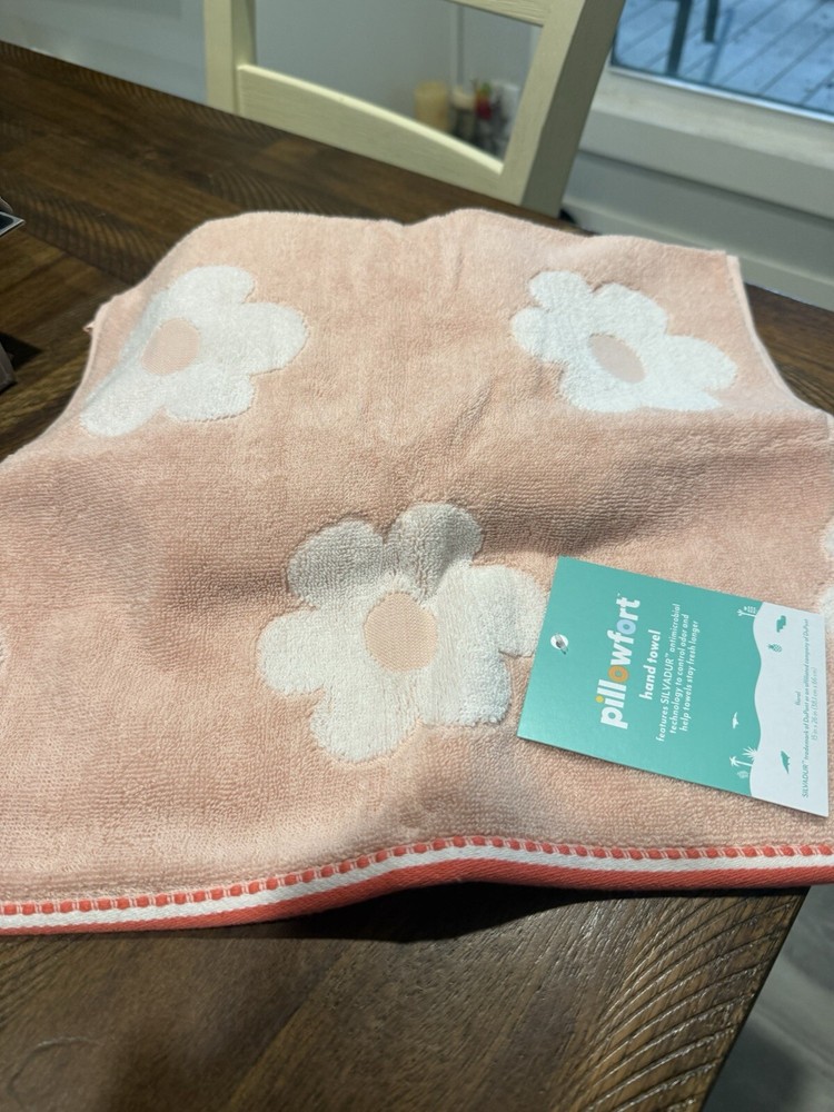 The Pillowfort Peach Hand Towels are a set of 2 soft and cozy hand towels made of cotton, perfect for use in the bathroom. Measuring 15" x 26", these towels are easy to care for with machine wash instructions, and come in a lovely peach color. Ideal for adults looking to add a touch of comfort and style to their bathroom decor.