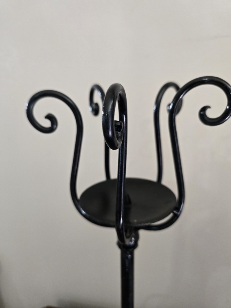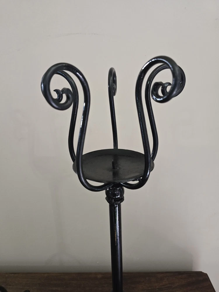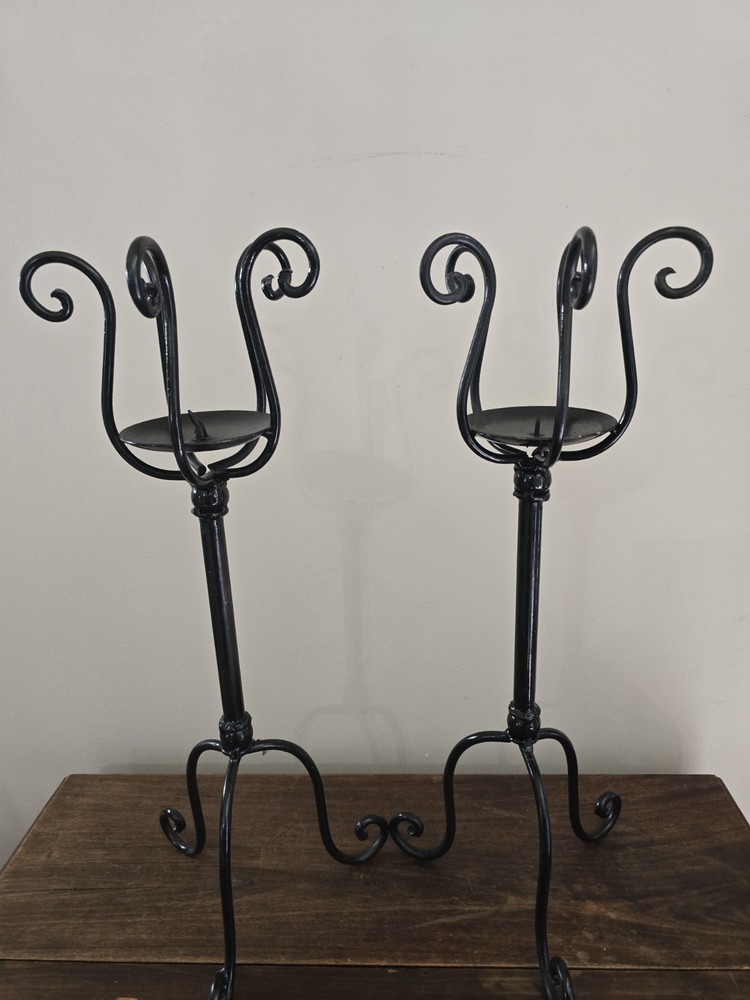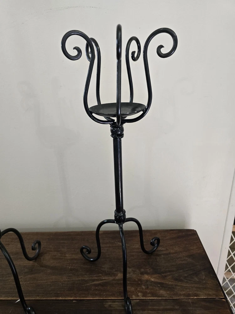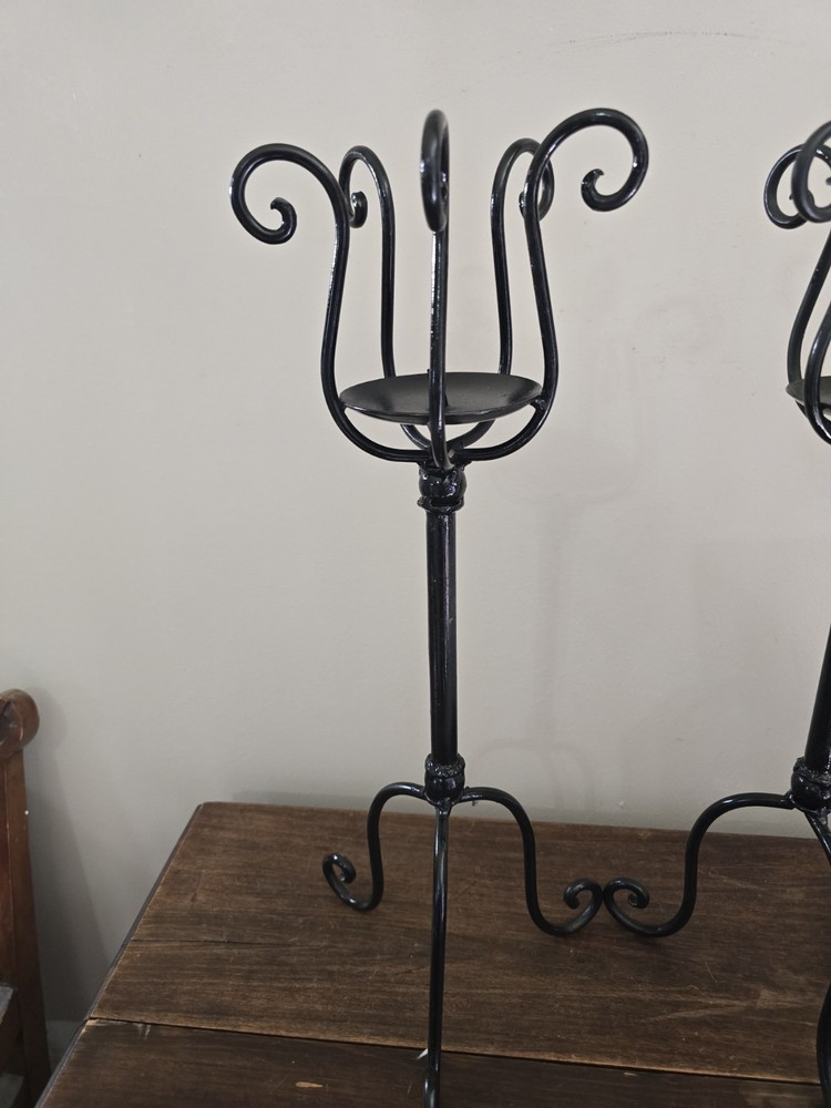 Set Of 2 Rustic Metal Tall Black Free Standing Table/Floor Candle Holders