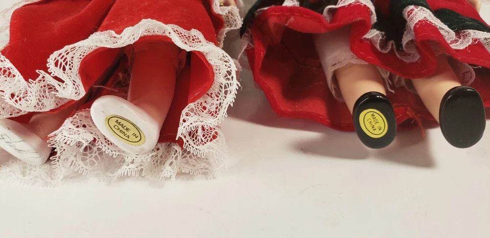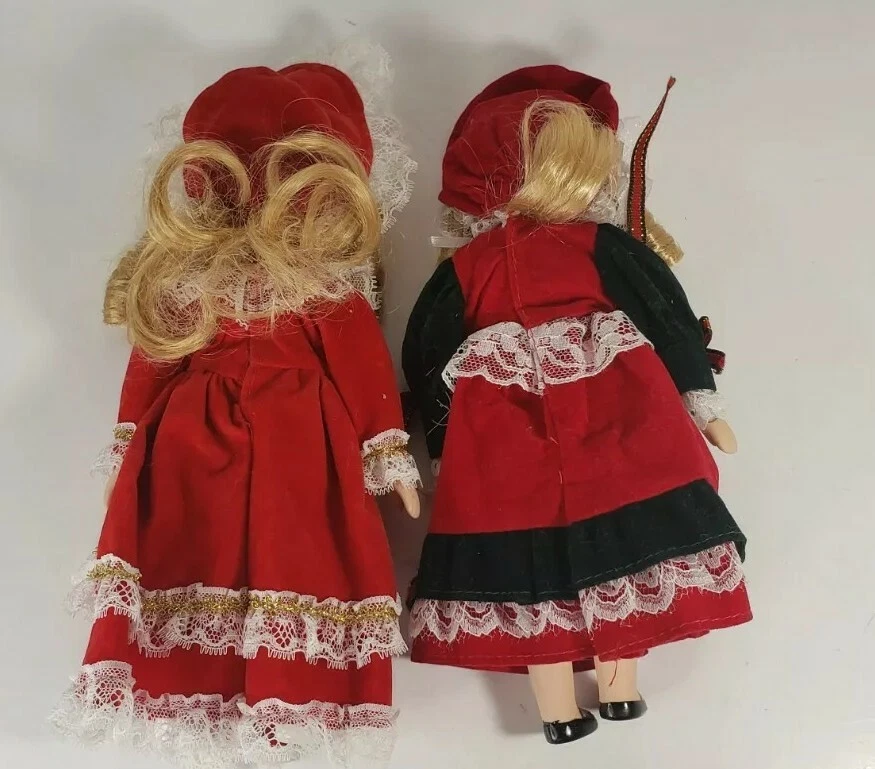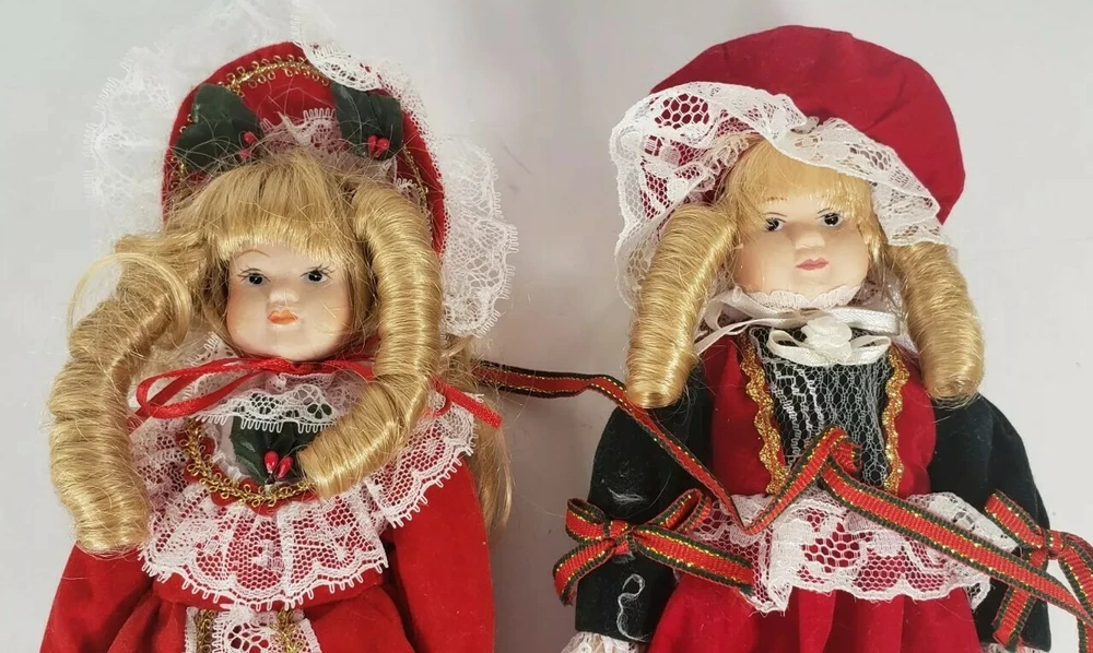 Set Of 2 Vintage Christmas Holiday Porcelain Sisters Dolls - Collectible Gift. Condition is "Used", but are in excellent condition. These dolls measure 8-9" tall. Shipped with USPS Priority Mail.