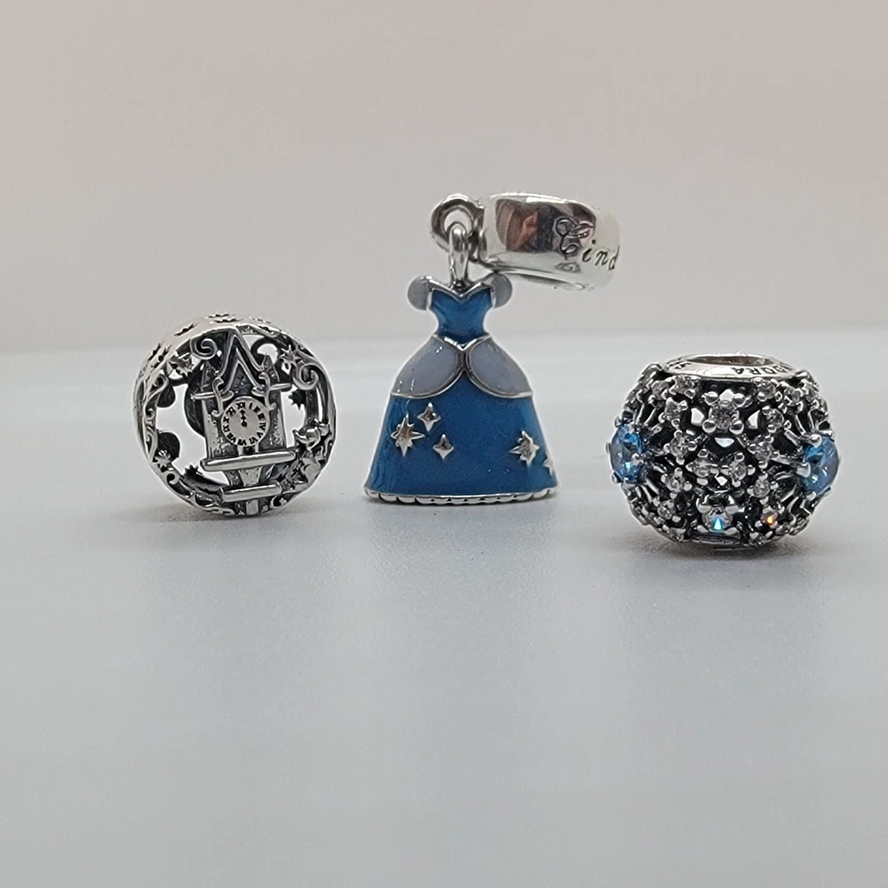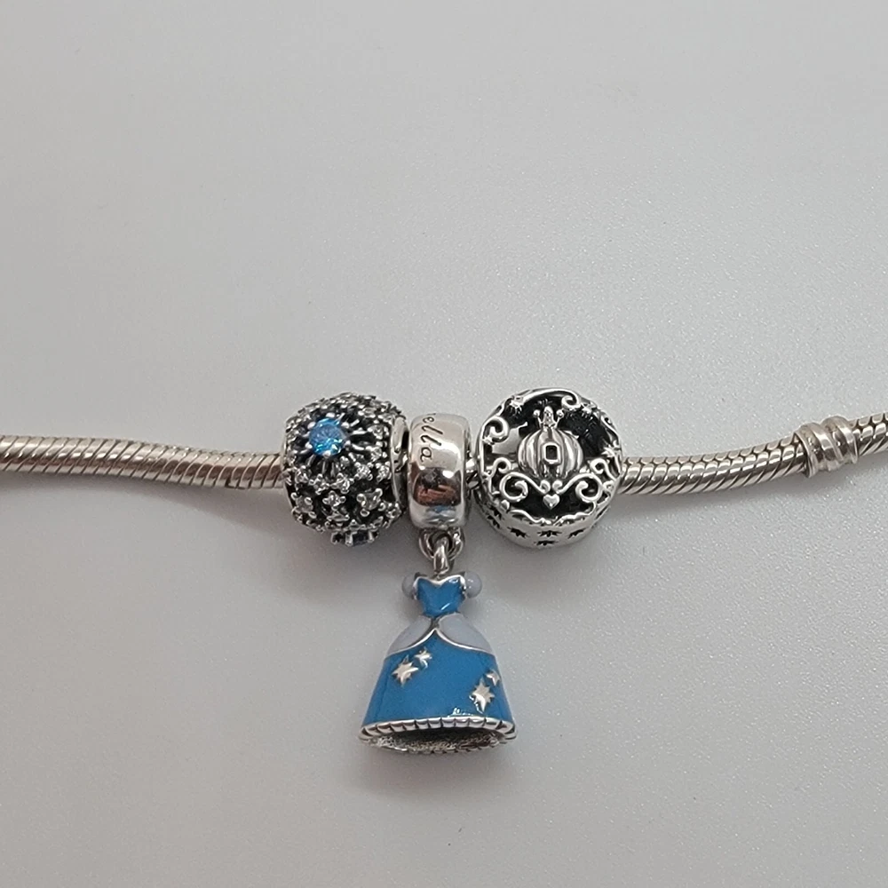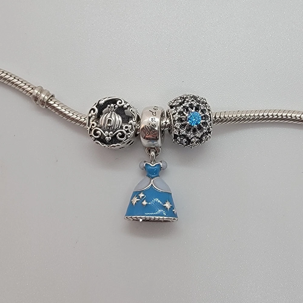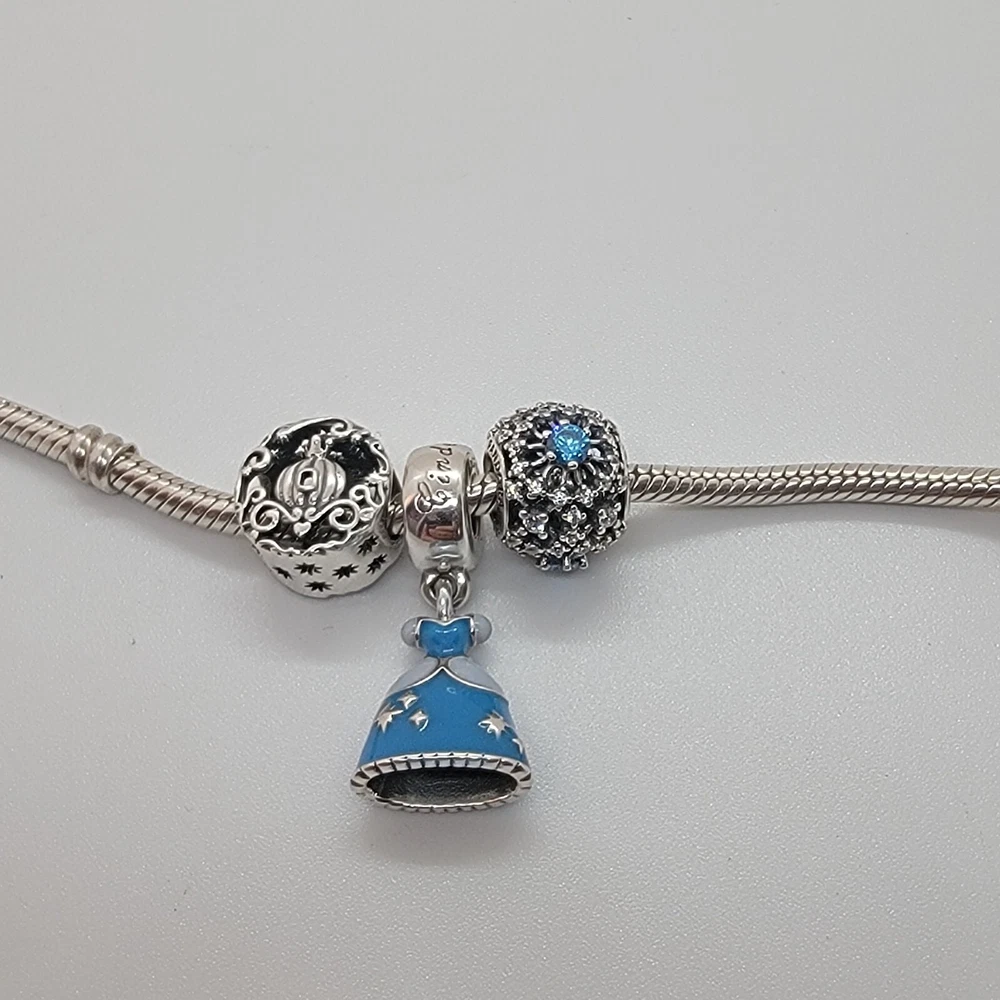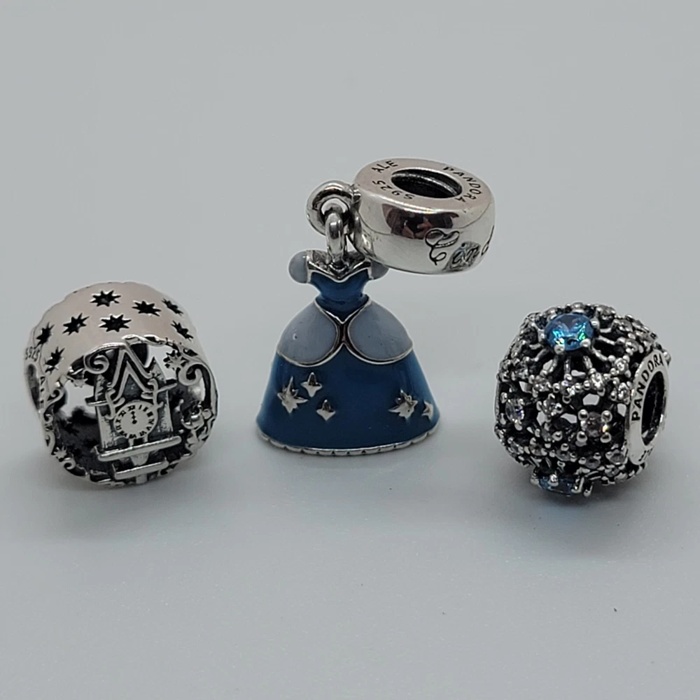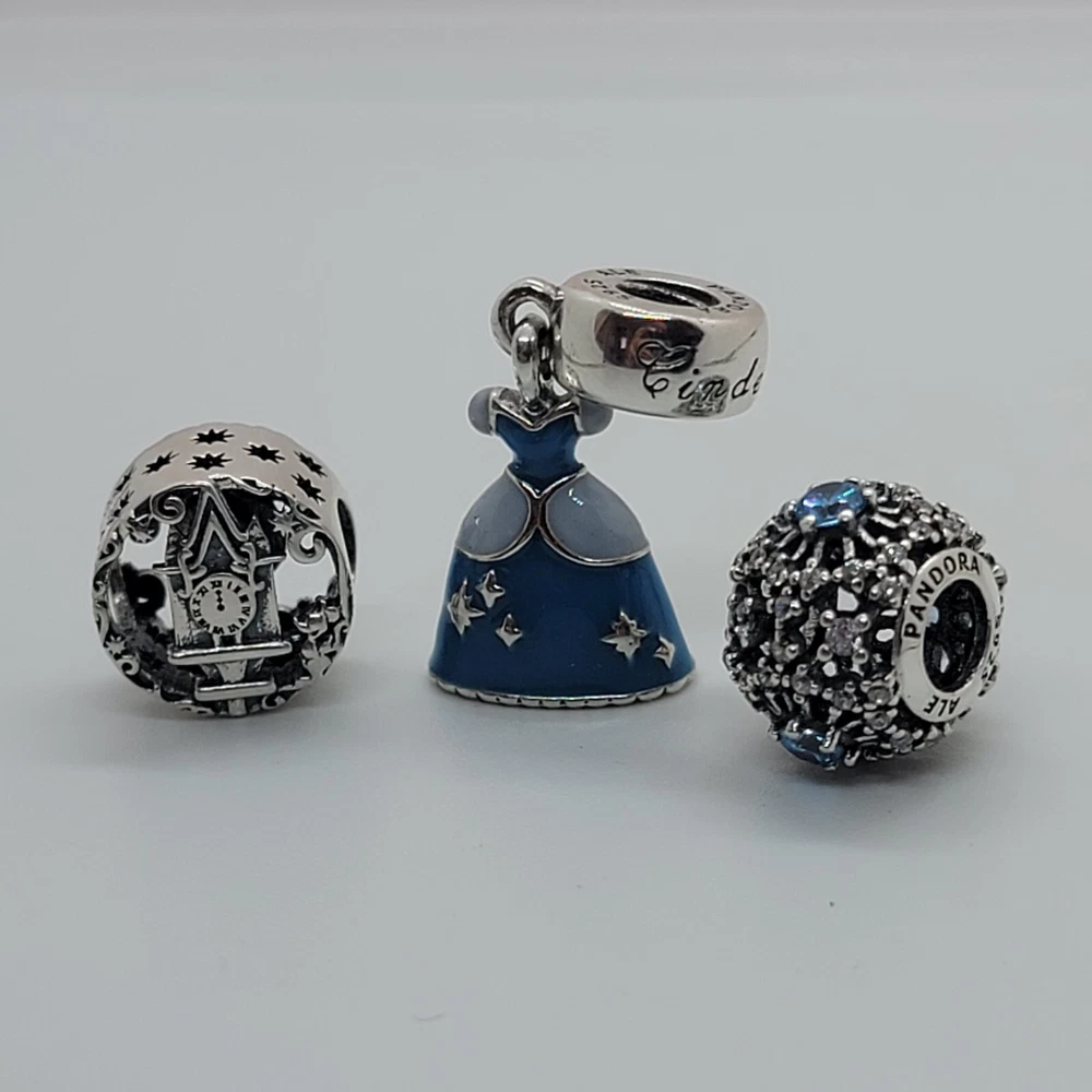 Set Of 3 New Pandora Authentic Cinderella Wish Pumpkin and Dress The charms are new, never worn. Some charms are used for pictures and advertising purposes only. All charms come in Jewelry Pouch with Pandora logo on it. Bracelet and Box NOT INCLUDED.