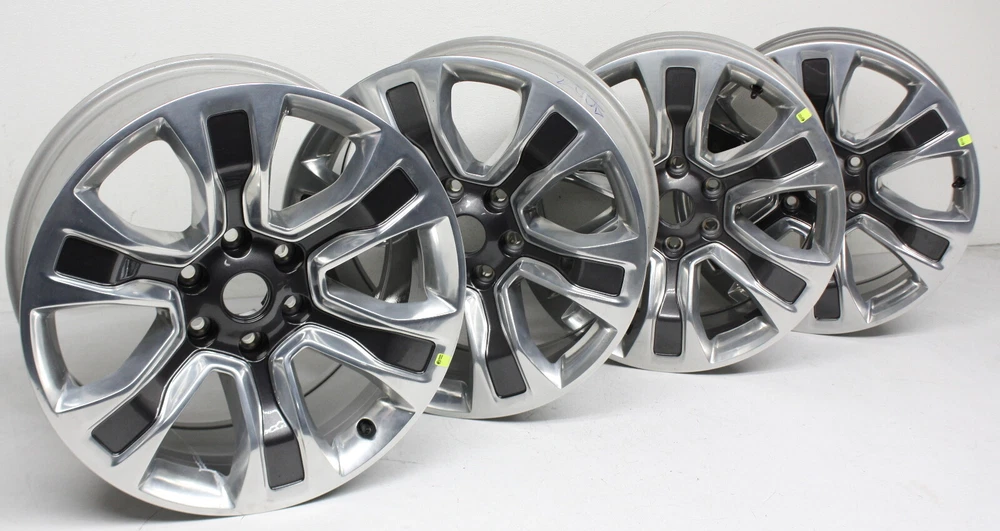 Alpha Automotive STORE Set Of 4 OEM 20 in Wheel For Ram 1500 5YD591AUAA Chrome Black spoke inserts WRU Specifications Payment Returns MSRP: $1565.00 Brand: Ram Color: Chrome with Black spoke inserts WRU Condition: New Other Notes: NOTES: Superficial marks from storage. FITMENT NOTES: Alloy wheel, 6 spoke design, Chrome with black spoke inserts (Code WRU). Dimensions: 20x9", 6x139.7mm (6x6.5) bolt pattern, 19.05mm Offset. Center cap not included. Out of original box. Overall in excellent condition. Color appearance will vary from monitor to monitor. Please double check the color and verify the part number with your local Ram dealer using your VIN and the part number provided before purchasing. Manufacturer Part Number: 5YD591AUAA Interchange Part Number: 560-02682 Part Brand: Ram Rim Width: 9 Rim Diameter: 20 Number of Bolts: 6 Rim Material: Alloy Offset: 19.05mm Bolt Pattern: 6x139.7mm (6x6.5) Inventory ID: 368698 Warranty: 90 Day publishtochannels: yes We accept PayPal, American Express, Discover Card, Visa or Master Card. Buyers agree to pay at the time the order is placed. Prices for Products exclude all insurance, freight, federal, state and local taxes, fees, and other governmental assessments, all of which shall be paid by Buyer directly. Your satisfaction is important so returns are accepted for non-electrical products for 30 days. All returns require prior authorization by contacting Customer Service. At our sole discretion, we may accept returns for exchange or refund. Items must be in same condition as shipped. If an item is received damaged or incorrectly product, please contact Customer Service immediately. Items that are defective and shipped from us or items that you did not order but received from us, will qualify for a refund. Refunds are contingent upon inspection of item(s) once we receive the returned product. There is a 20% restocking fee for all returned items that are not being exchanged and are not damaged. Again you MUST contact us within 30 days if you intend to return ANY item sent from our store. The Customer is responsible for all shipping costs if seller is not at fault. Notes: NOTES: Superficial marks from storage. FITMENT NOTES: Alloy wheel, 6 spoke design, Chrome with black spoke inserts (Code WRU). Dimensions: 20x9", 6x139.7mm (6x6.5) bolt pattern, 19.05mm Offset. Center cap not included. Out of original box. Overall in excellent condition. Color appearance will vary from monitor to monitor. Please double check the color and verify the part number with your local Ram dealer using your VIN and the part number provided before purchasing. Additional Description and Condition Notes: OEM For Ram 1500 Chrome with Black spoke inserts WRU 20 Inch Alloy Wheel Part Numbers: 5YD591AUAA; Color: Chrome with Black spoke inserts WRU Genuine Ram Part Important Fitment Note: - Alloy wheel, 6 spoke design, Chrome with black spoke inserts (Code WRU). - Dimensions: 20x9", 6x139.7mm (6x6.5) bolt pattern, 19.05mm Offset. Fits: 2019-2024 Ram 1500 This may fit other Vehicles, Years, and Models. While every reasonable effort is made to ensure the accuracy of the information for this listing, the buyer is responsible to research proper vehicle fitment before purchasing.