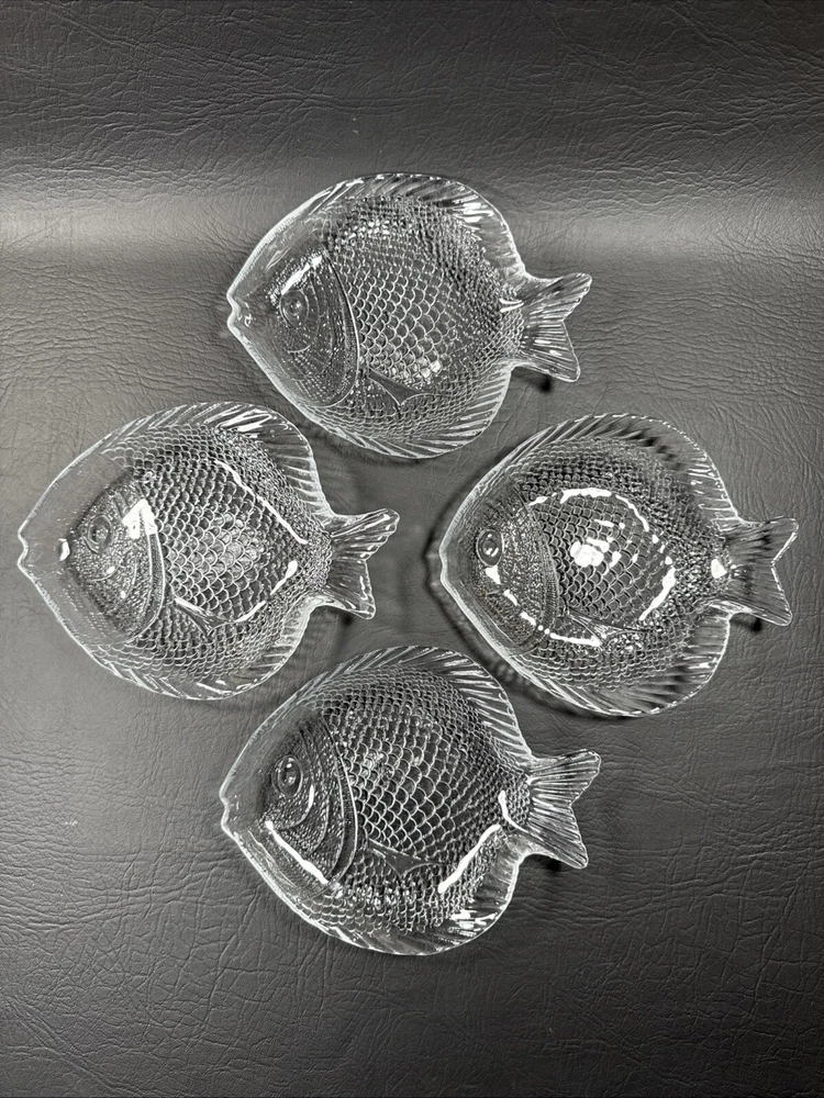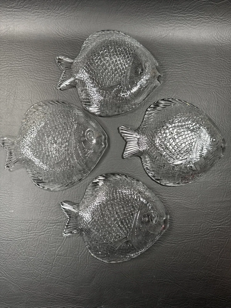 Fish Plates made by Pasabahce located in Istanbul Turkiye AKA Turkey. Plates are in excellent condition. Check Photos closely for condition and details. Packed carefully for shipping. Priority Mail Recommended!