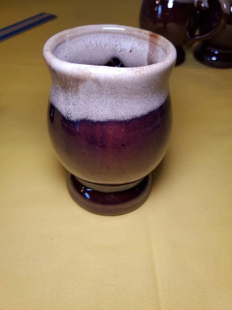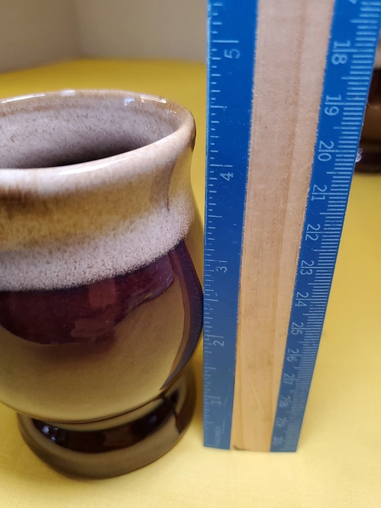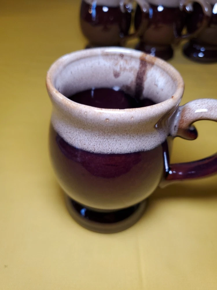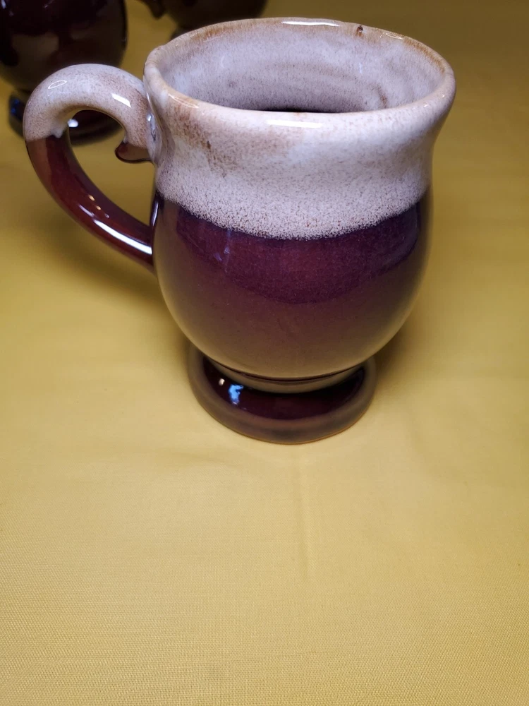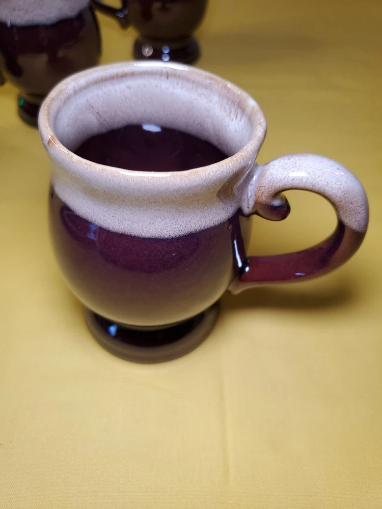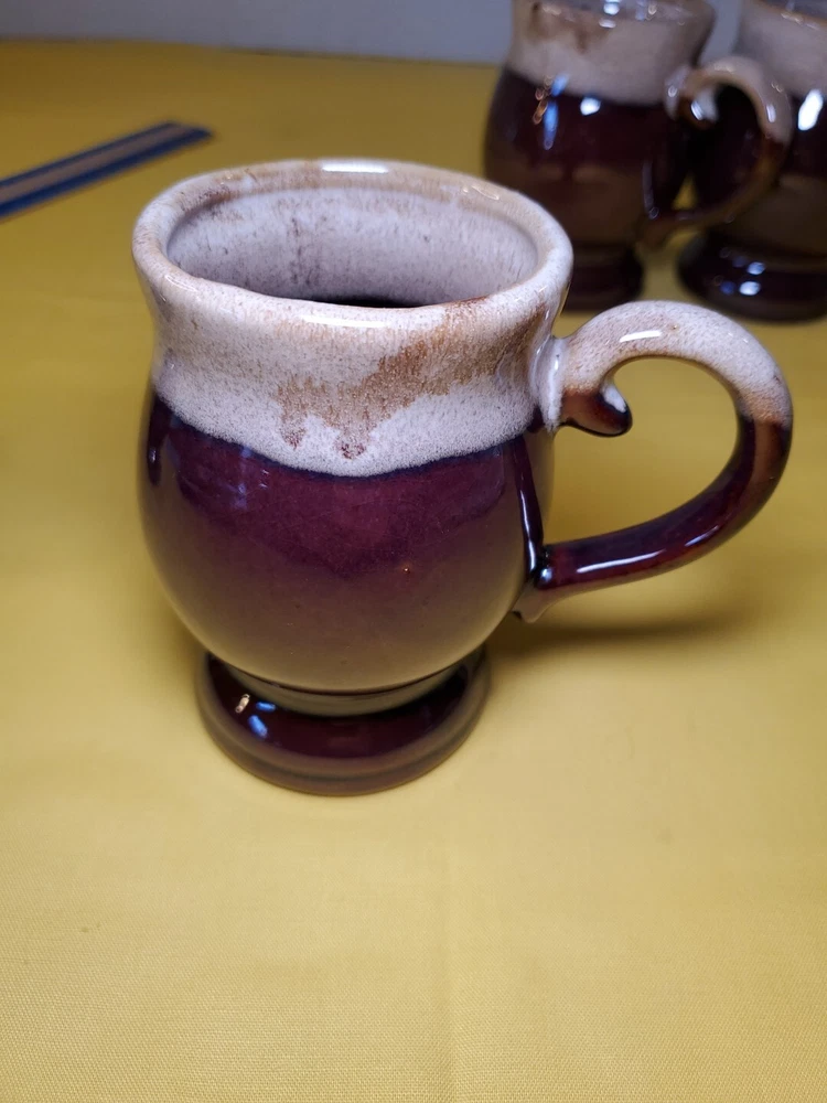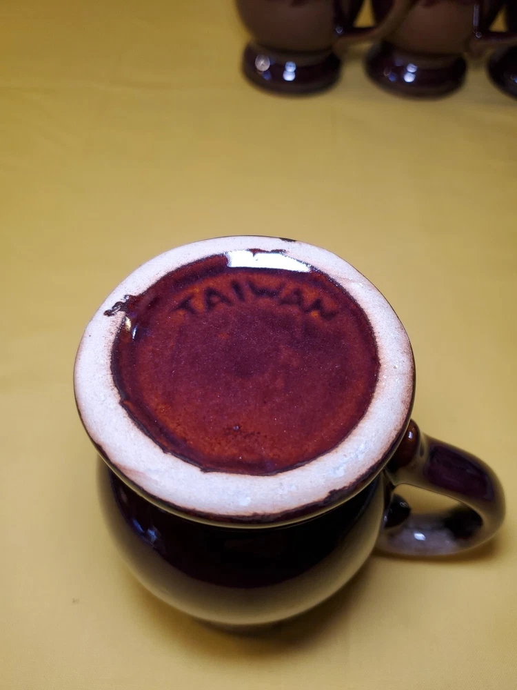 THANK YOU FOR VISITING OUR STORE. WE SHIP 6 DAYS A WEEK (UNLESS THERE IS A FEDERAL HOLIDAY). MOST ITEMS WILL SHIP IN A STURDY BOX AS NEEDED. PLEASE FEEL FREE TO REACH OUT IF YOU HAVE ANY QUESTIONS. WE WILL COMBINE SHIPPING WHEN AVAILABLE. This set of 4 vintage brown drip glaze coffee mugs is the perfect addition to any coffee lover's collection. Made in TAIWAN in the 1960s, these medium-sized stoneware mugs feature a figural design and a 4oz capacity, making them ideal for hot beverages like coffee and hot chocolate. The mugs have a charming cottagecore theme and are handmade with care instructions to hand wash only. The 2.5" item width and 4" item height, along with the handle, make them easy to hold and enjoy your drink. This original set of coffee cups is a great choice for all occasions and conventions/events.