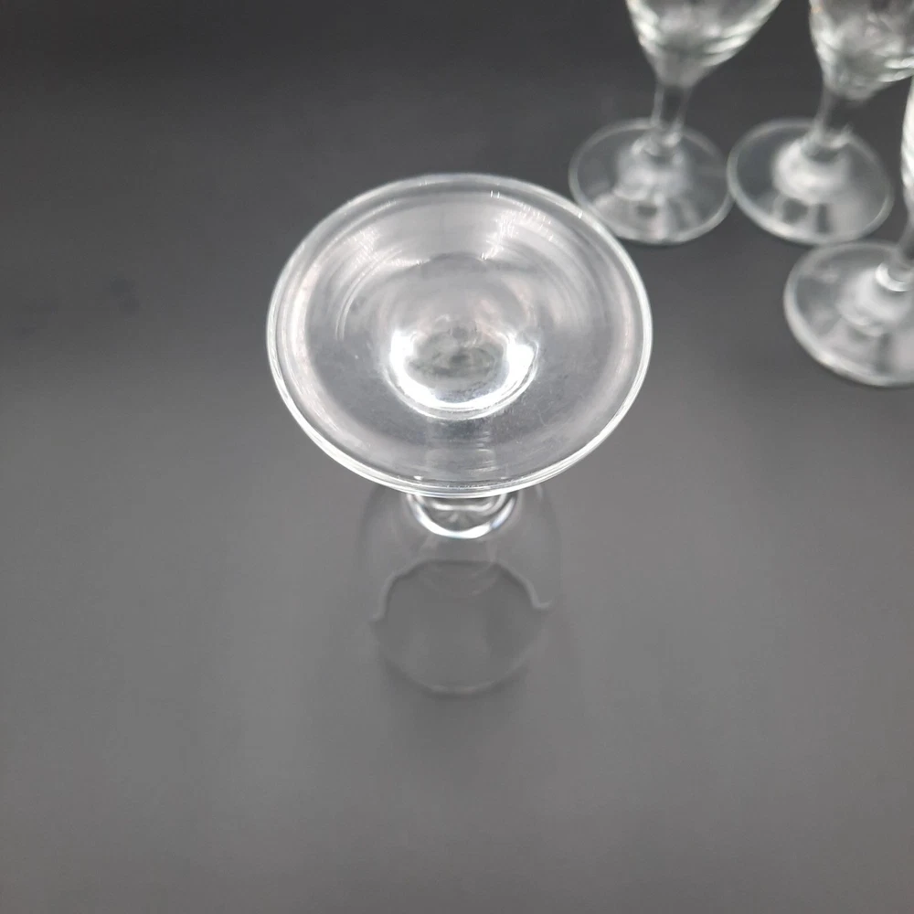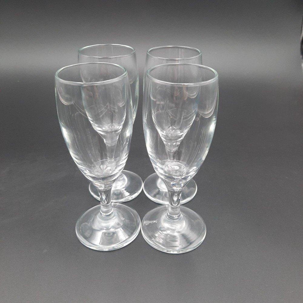This set of four vintage clear wine glasses exudes a timeless elegance, perfect for those who appreciate the charm of yesteryears. Their classic design and sturdy build offer both aesthetic appeal and functional use, making them a cherished addition to any glassware collection. • Set of 4 glasses • Clear glass material • Classic vintage design • Stemmed base for stability • Ideal for wine or other beverages height 5.75 inches
