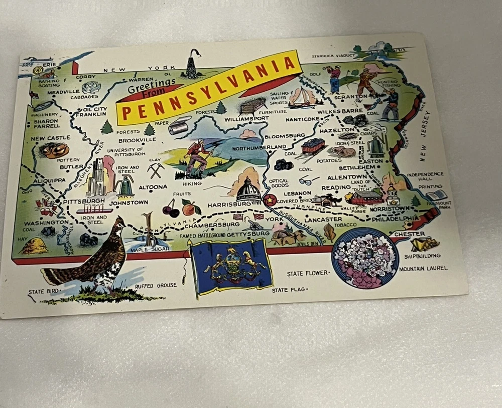 Set Of 4 Vintage Pennsylvania Postcards Liberty Bell , Valley Forge, Map of Pennsylvania with Highlights about Pennsylvania and Chinatown. These are from the Philadelphia Post Card Co. Price is for the set of 4 cards.