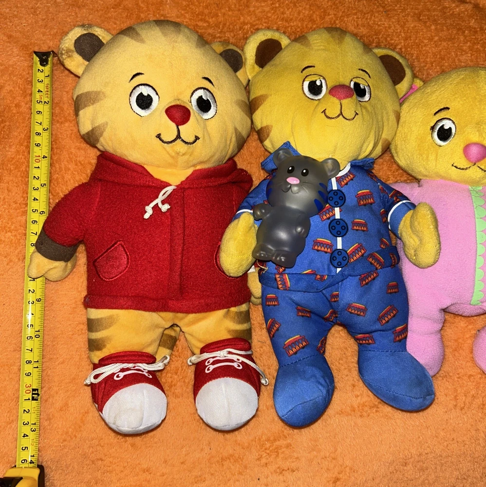 Set of 5 Daniel the Tiger plush. The goodnight Daniel plush is the only animated one and it does not light up but talking function works. Measurements and condition are as pictured.