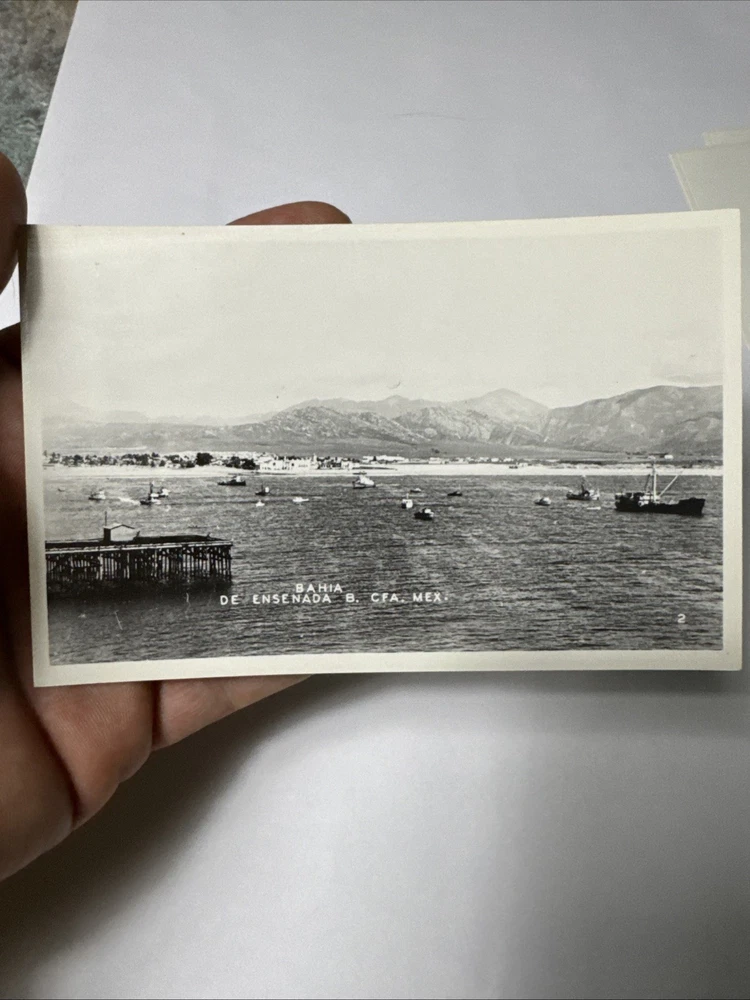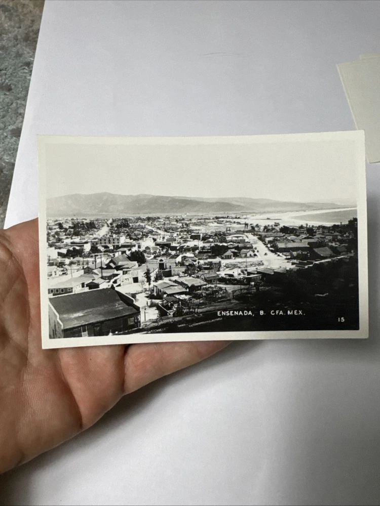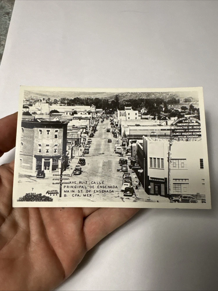 This set of 5 vintage postcards features different views of Ensenada, Baja California, Mexico. The postcards, dating back to the photochrome era (1939-Now), showcase the city's scenic landscapes and architecture. Each printed lithograph postcard measures a standard size of 5.5 x 3.5 inches and is made of paper, providing a glimpse into the cities and towns of North America from the early to mid-20th century. The original postcards are a single unit sold individually, offering a unique perspective on Ensenada's history and charm.