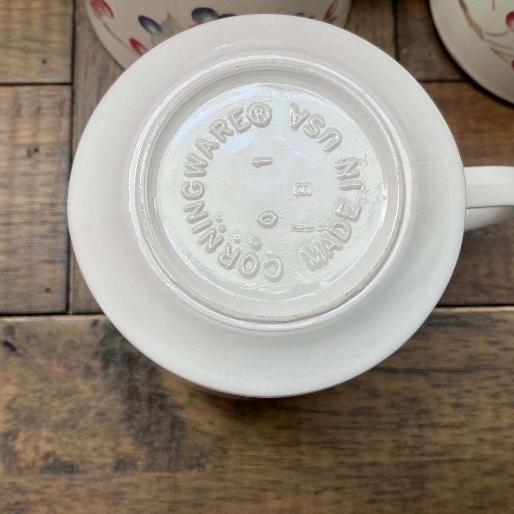 Product Line: Corning Number of Items in Set: Six-Piece Signed: Yes Features: Decorated, Dishwasher Safe, Microwave Safe Vintage: Yes Item Height: 3 inches Theme: Fruits, American Country/Region of Manufacture: United States Occasion: All Occasions Finish: Glossy Style: Retro Pattern: Abundance Fruit Motif Pattern MPN: Does Not Apply Origin: USA Material: Ceramic Backstamp: Printed Color: Multicolor Department: Unisex Adults Type: Mug Production Technique: Pottery Shape: Round Time Period Manufactured: 1970-1979 Signed By: Corning Handmade: No Item Diameter: 3 inches UPC: Does Not Apply Brand: CorningWare Year Manufactured: 1970 Care Instructions: Machine Washable Original/Licensed Reproduction: Original gtin13: Does Not Apply Production Style: Art Pottery