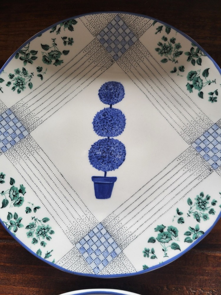 This set of four Anthropologie plates features a beautiful floral and nature-inspired pattern, perfect for all occasions. Made of ceramic with a shiny finish, these round plates have four compartments and come in a vibrant multicolor palette. Ideal for adults, this original plate set by Anthropologie is dishwasher safe for easy cleaning, making it a stylish and practical addition to any dining collection. 8 inches in diameter