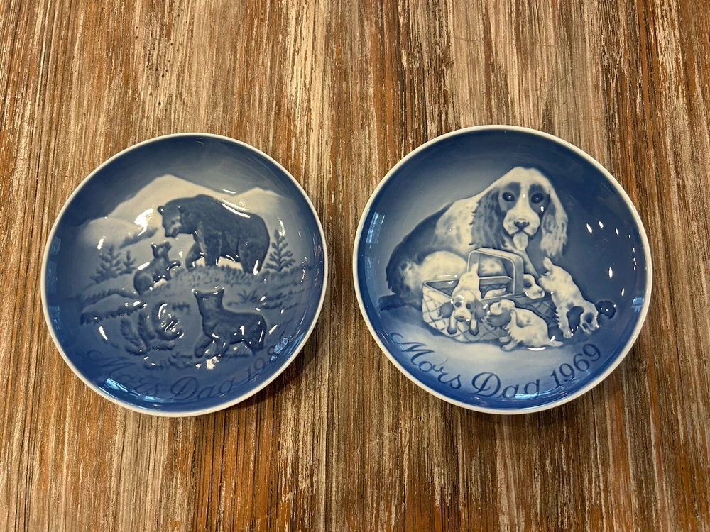 Set Of Two Bing & Grondahl Mothers Day Collector Plates. 1969 Mother and puppies. 1985 Mother Bear and cubs. No flaws, ready to hang for display.