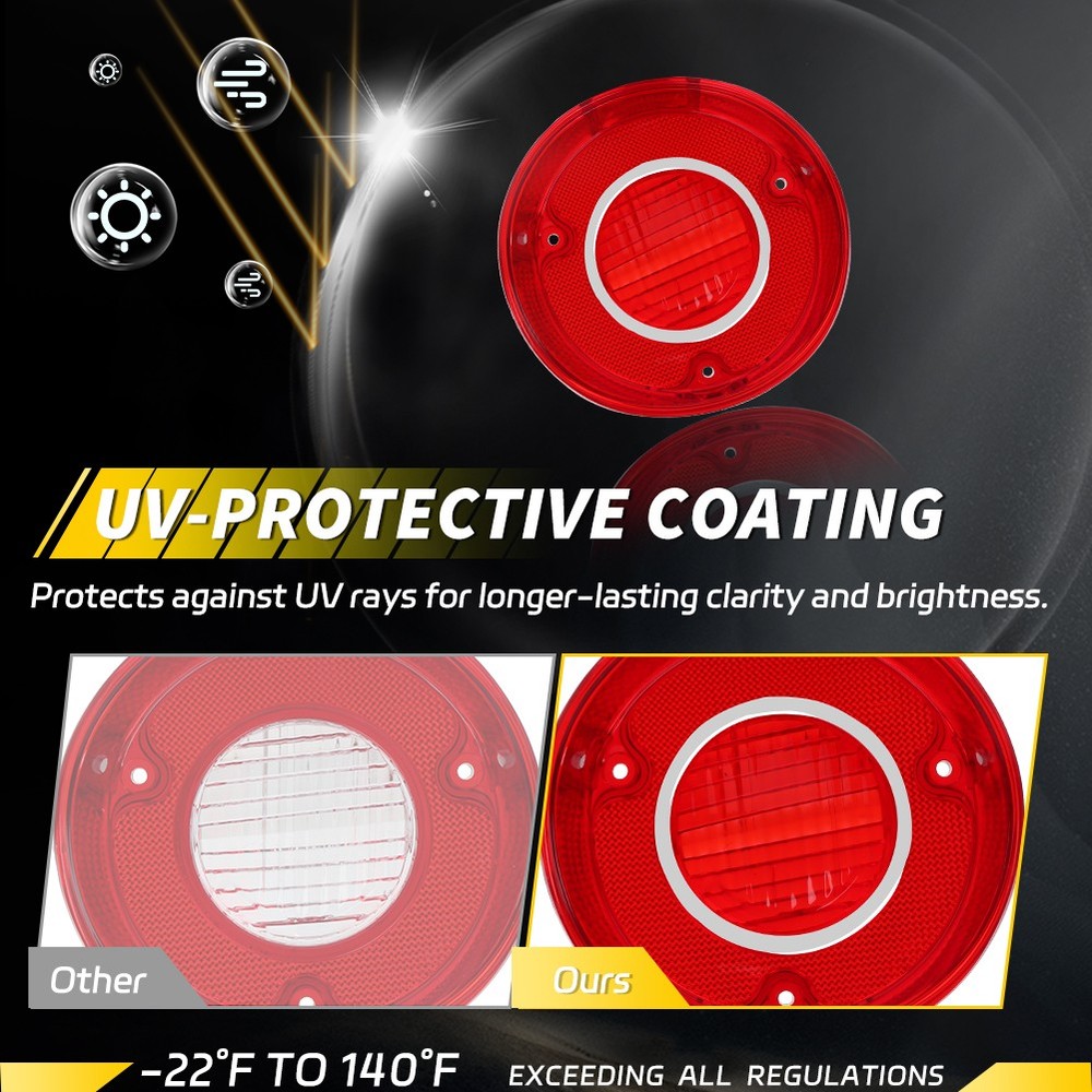 Product Detail Copyright©MotoringPlus Details This page features One Set (4 Pieces) Red Rear Tail Lights Lenses & Backup Light Lenses For For 1972 Chevry Chevelle Malibu SS These lenses are made with high-quality Polymethy l Methacrylate (PMMA) and Polycarbonate (PC) plastics No modification required! Each piece is easy to install with an OEM fit, Instantly transform your car and give it a modern and trendy appearance and feel! Note: Lamp housings, Bulbs & socket adapters are NOT included Specifications: 100% Brand new and quality Lens Color: Red & Clear A complete set of tail light lenses & backup light lenses, replacement for the driver side & passenger sides Compatible With For 1972 Chevry Chevelle Malibu SS Directly replace or repair your car's rear tail light lenses & backup light lenses CE DOT SAE approved Application: For 1972 Chevelle Malibu SS Please make sure you have available space in your car for these lights to fit before placing or der. Package include: 2PCS Driver & Passenger side rear tail light lenses (Red Lens) 2PCS Driver & Passenger side rear backup light lenses (Red & Clear Lens) Installation: Direct replacement the OEM parts without any modification needed Note: Professional installation is highly recommended! Returns Policy Shipping Policy Payment Method About US Contact Us Returns Policy Please check actual stock bulb model & housing size before purchasing replacement bulbs. Compatibility list on eBay listing is not a complete list and it is a known issue that there are errors on it. Half year warranty from the purchased date. Please contact us via ebay message before returning the defectived item. Our warranty does not extended to any products that are physically damaged or that are not under normal operating conditions as a result of misuse or improper installation on the buyers/user's part. Return items should include the original packaging and all accessories. Buyers MUST contact us for the returning address. In all cases, buyers pay shipping fees at their own cost to return products for exchange or refund. We will be responsible for the postage of replacements. Refund will be made upon receipt of the returned item. Our goal is to make sure you are a happy buyer and pleasant shopping with us. If you have any problems, please contact us immediately before leaving us any negative or neutral feedback. We understand the concerns and frustrations you might have, and will do our endeavor to resolve the issues. Please give us the opportunity to resolve any problem. Shipping Policy Item will be shipped from China / Hongkong Post by Standard International Post. All orders will be shipped to buyer's paypal shipping address within 24 hours after receiving your verified payment (Excluding Weekends and Public Holidays) International order may takes about 15-25 business day delivery time for most countries. Transactions on weekends or public holidays,item will be sent later on work time. Payment Method We accept Paypal ONLY. Unpaid transaction will be cancelled after 8 days About US Contact Us We are dedicated to providing you the best shopping experience and high quality items at a very low price. If you are satisfied with our service,Please remember to leave us 5 STAR for All Detailed Seller Ratings If you found any problem/issue of our merchandise/service,please let us know before leaving any negative feedback! Please feel free to contact us if you have any question. Any message will be replied within 24 hours. We will try our best to help! Home Payment Shipping About us Contact us Copyright©MotoringPlus Home Payment Shipping About us Contact us Store Categories Store Categories SIDE MARKER LIGHT TURN SIGNAL LIGHT TAIL BRAKE LIGHT LICENSE PLATE LIGHT DECODER OTHERS Other Product Detail Copyright©OFFKAT Why Buy From Us Why Buy From Us Details This page features One Set (4 Pieces) Red Rear Tail Lights Lenses & Backup Light Lenses For For 1972 Chevry Chevelle Malibu SS These lenses are made with high-quality Polymethy l Methacrylate (PMMA) and Polycarbonate (PC) plastics No modification required! Each piece is easy to install with an OEM fit, Instantly transform your car and give it a modern and trendy appearance and feel! Note: Lamp housings, Bulbs & socket adapters are NOT included Specifications: 100% Brand new and quality Lens Color: Red & Clear A complete set of tail light lenses & backup light lenses, replacement for the driver side & passenger sides Compatible With For 1972 Chevry Chevelle Malibu SS Directly replace or repair your car's rear tail light lenses & backup light lenses CE DOT SAE approved Application: For 1972 Chevelle Malibu SS Please make sure you have available space in your car for these lights to fit before placing or der. Package include: 2PCS Driver & Passenger side rear tail light lenses (Red Lens) 2PCS Driver & Passenger side rear backup light lenses (Red & Clear Lens) Installation: Direct replacement the OEM parts without any modification needed Note: Professional installation is highly recommended! Returns Policy Shipping Policy Payment Method About US Contact Us Returns Policy Our 60-day Satisfaction Guarantee assures our customers that they will receive all orders promptly and exactly as described. In addition, it allows customers to return new and unused products in their original factory condition for any reason within 60 days from the date of purchase. Buyers are responsible for appropriate packing, returning shipping cost, insurance and returning the item in "new" condition. Used items will not be accepted for return. We will replace the returning item with an identical item, issue a full store credit or a full refund. Our goal is to make sure you are a happy buyer and pleasant shopping with us. If you have any problems, please contact us immediately before leaving us any negative or neutral feedback. We understand the concerns and frustrations you might have, and will do our endeavor to resolve the issues. Please give us the opportun