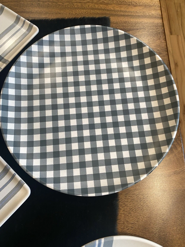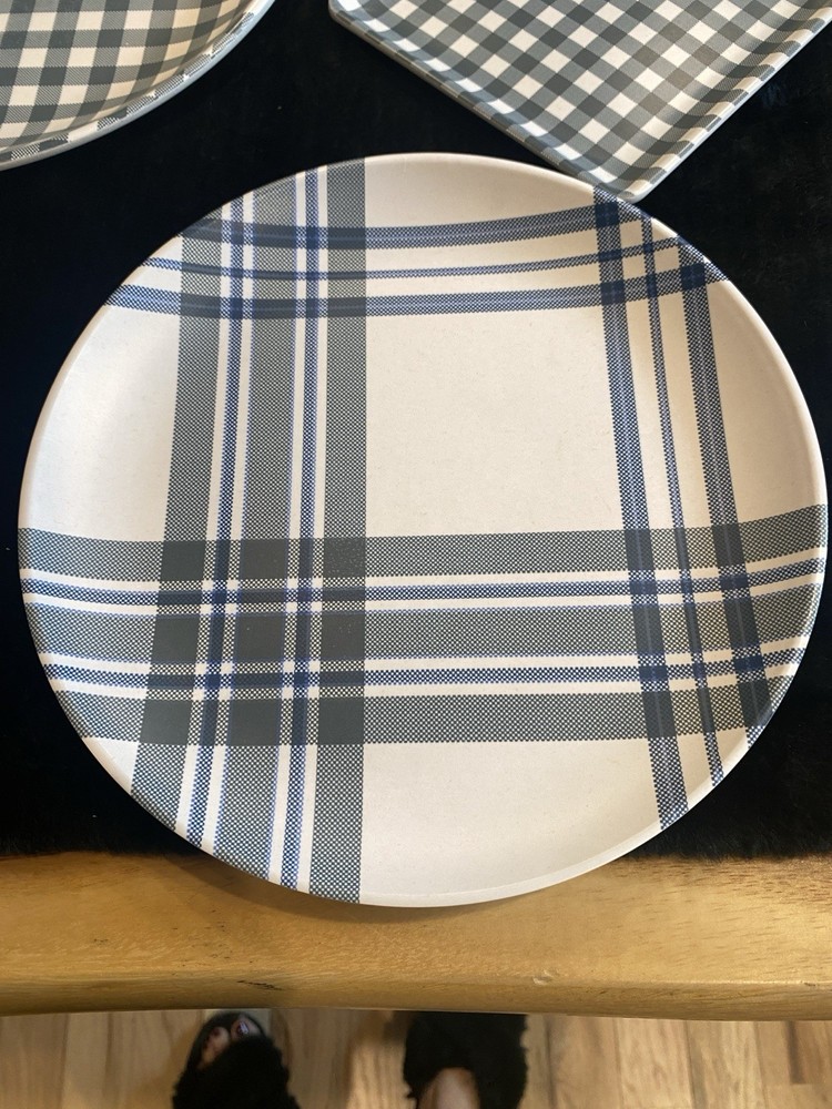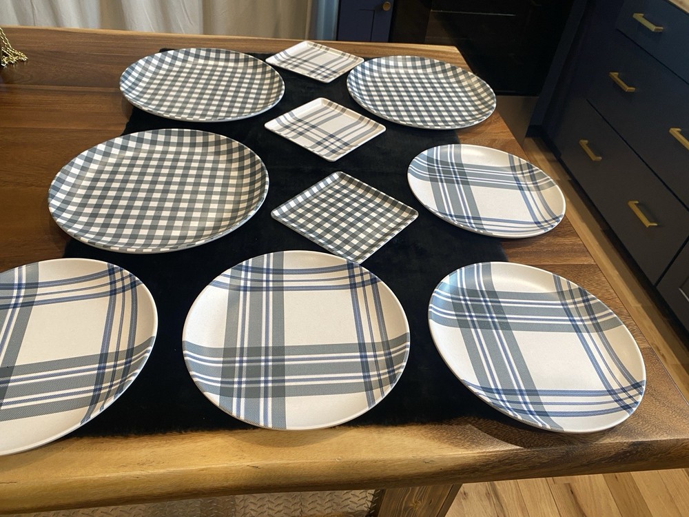 HomeSet of 10 Blue White Melamine Plaid & Checked Plates Round 10" Square 6"
