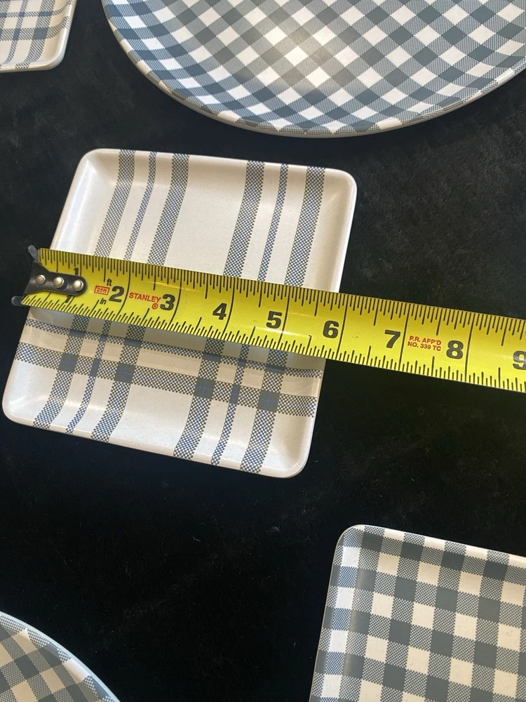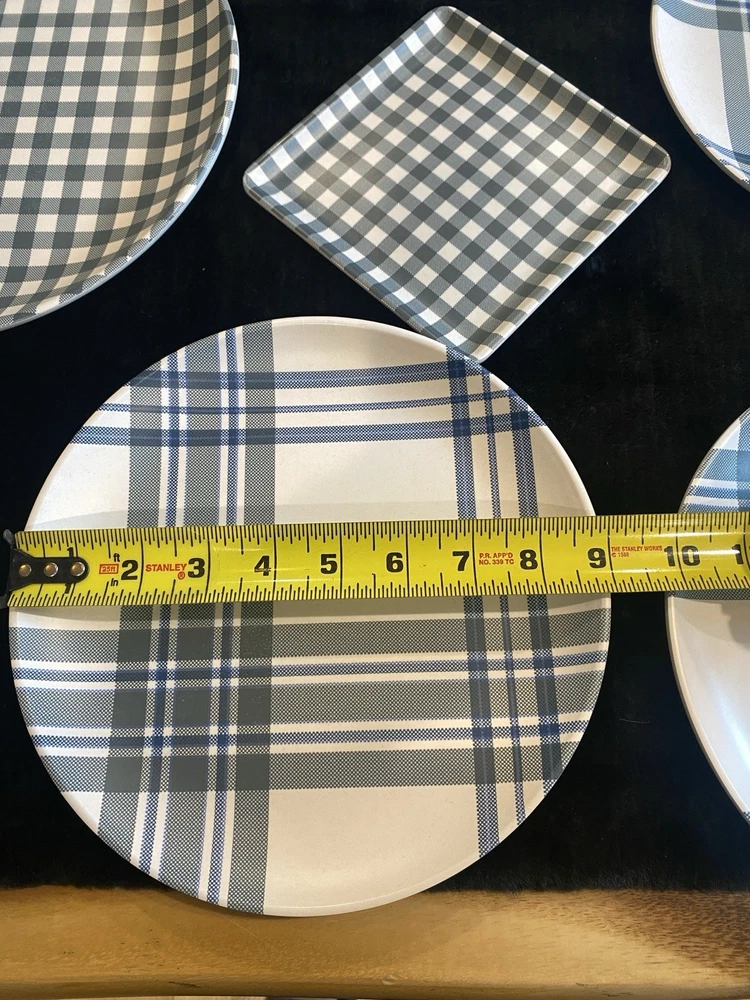 Set of 10 Blue White Melamine Plaid & Checked Plates Round 10" Square 6"