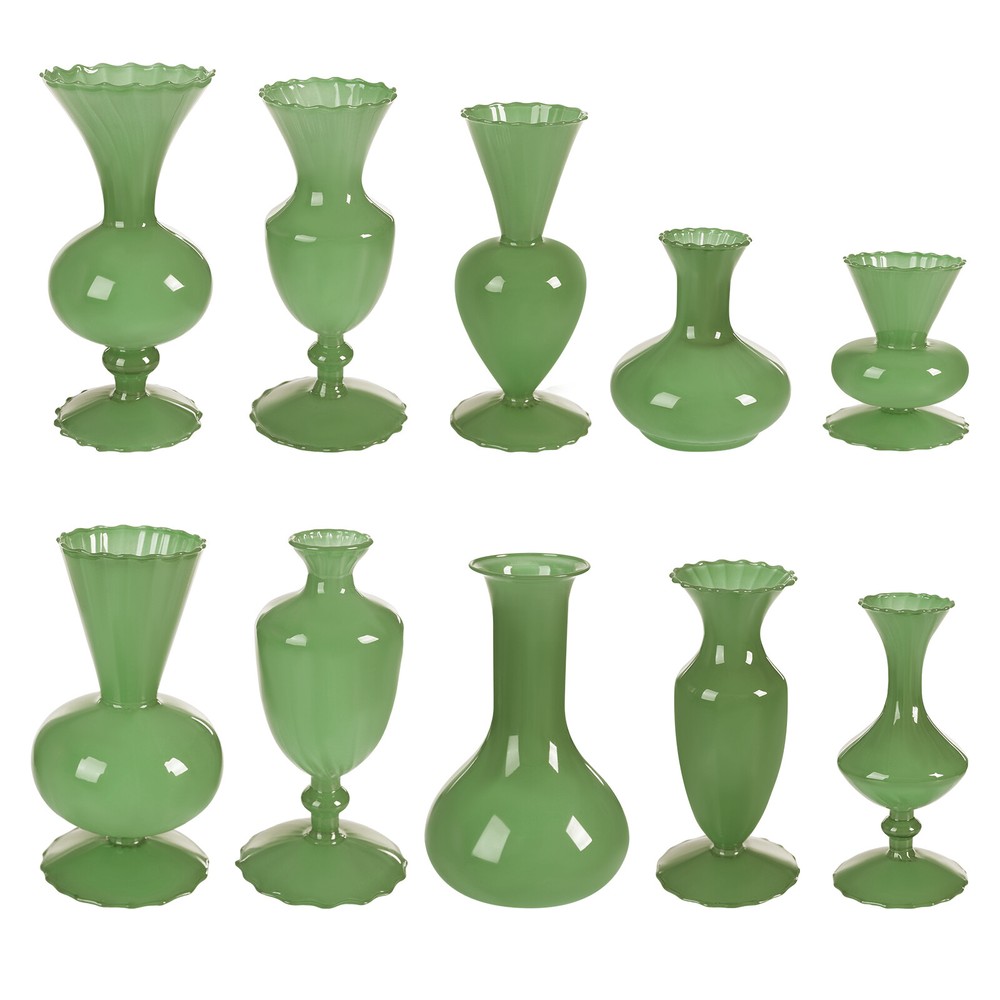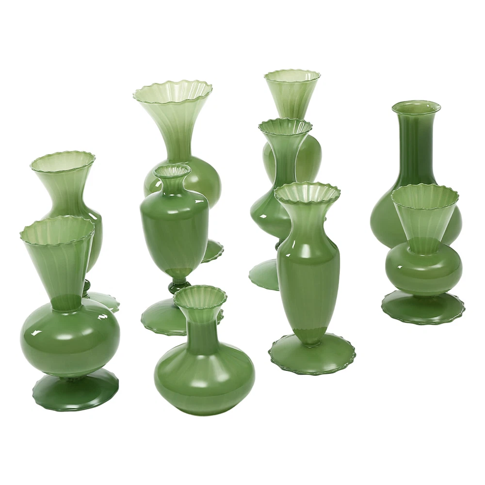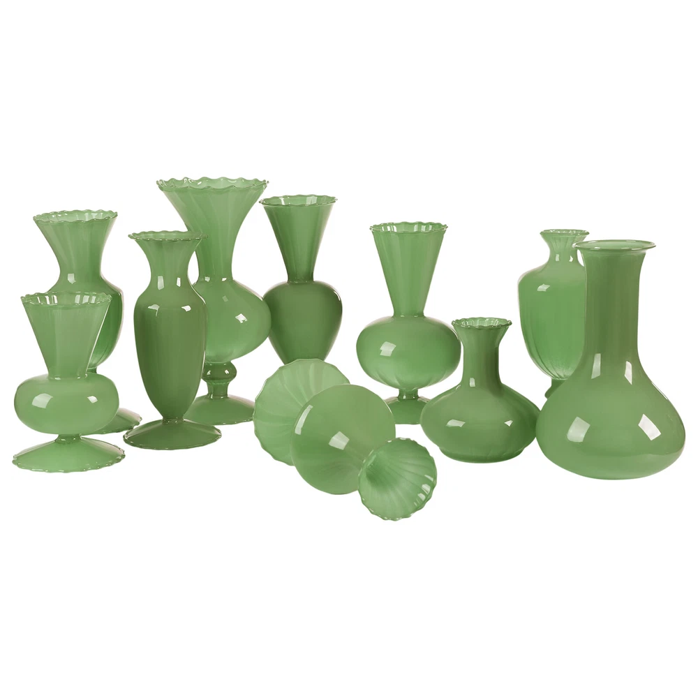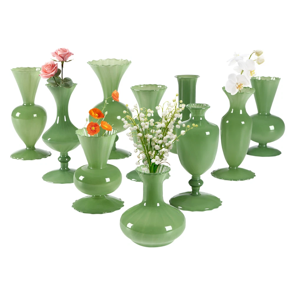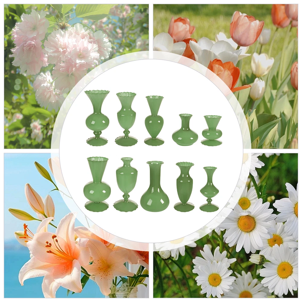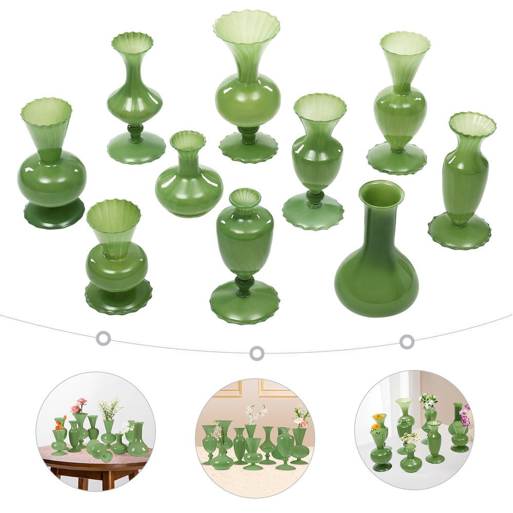 Set of 10 Mini Vases for Flowers - Ten Piece Small Glass Bud Vases - Green Description Weddings, graduations, birthdays, etc. are all memorable events in our lives that will become our precious treasures. With this glass vases set, your wedding and other important events will be even more wonderful. Our vases are made of premium glass, so they can be used for a long time and accompany you through various stages. 10 different styles in sufficient quantity to meet your home decorating needs, adding a touch of elegance and beauty to your home. Key Features Build to Last: High-quality glass makes the product durable and solid, so it remains beautiful and practical for a longer time. Strong Stability: The solid material, reasonable structure, and stable base provide this item with a strong bearing capacity, so you can use it safely without worrying about the fracture. Diverse Styles: The 10 different shapes, sizes, and styles enrich your visual experience, create a personalized background, add brightness to a dull event, and become good home decoration. Wherever it is placed, it is a beautiful scenery. Nice Decorations: You can place this product at the top of the booth as an excellent decoration for special days, creating an elegant atmosphere, especially for weddings. You can also put it on the table to relax your mood. Even if it hasn’t artificial flowers on it, it is still a very elegant decoration! High Cost-effective: 10 Pcs allow you to use different items, such as flowers, artificial flowers, and vines, on other occasions to decorate them freely and repeatedly, promoting the unity of style and fully meeting your needs. Labor-saving Cleaning: The smooth surface and simple structure make it convenient for you to clean with a wet towel and water. Easy to Carry and Store: Its small size and lightweight( 4.41 lbs ) make it easy for you to store and carry them anywhere. Ideal Gift: With an attractive appearance, this product is used as a gift for family, friends, and lovers to make their home more atmospheric and festivals more meaningful. Protective Package: To prevent the product from being damaged and bumped during transportation, we packed it with foam and cartons to protect your products to the maximum extent possible. Details Round Corners: Compared with traditional square corners, an arc design can better care for your skin. Flared Mouth: The flared mouth of the vase is not only aesthetically pleasing but also makes it easier for you to insert flowers, artificial flowers, and other decorations. Application Match with artificial flowers and other items, this product can be used in homes, restaurants, terraces, coffee shops, hotels, balconies, bars, clubs, Spa, candlelight dinners, holiday dinners, weddings, the background decoration of the studio, as well as any other special activities you would like to decorate. Specification Color: Green Style: Modern Material: Glass Assembly Required: No Mount Type: Free Standing Number of Items: 10 Product Size(D*H): 11*9.5cm/4.33*3.74in, 9*17cm/3.54*6.69in, 9*16.5cm/3.54*6.5in, 9*17.5cm/3.54*6.89in, 9*17.5cm/3.54*6.89in, 9*7cm/3.54*2.76in, 12*18.5cm/4.72*7.28in, 9*19cm/3.54*7.48in, 9.3*20cm/3.66*7.87in, 10*22cm/3.94*8.66in Net Weight: 2kg/4.41lbs Gross Weight: 2.3kg/5.07lbs Package Size: 55*45*15.5cm/21.65*17.72*6.1in Package Included 10* Glass Vases Notes Please note that flowers and other decorations are not included. Please use a soft cloth to clean and dry it. Please do not use harsh chemicals or abrasives. It is better to add some rocks or floral foam to the inside to make the item more stable. For better results, we recommend using a small bouquet. Please pay attention to the size details, it may be smaller than you expect. Please check the size of our vases before purchasing a bouquet to prevent buying a larger or smaller bouquet. Please allow the slight color difference caused by the shooting light and 1-3 cm error due to manual measurement, and make sure you do not mind before ordering. Payment Delivery details Terms of sales About us Contact us Payment We accept ebay payment 。 Fees such as import duties, taxes are not included in the item price or shipping costs. These charges are the buyer's responsibility. Delivery details Shipping: 2-9 working days to: USA Terms of sales We maintain high standards of excellence and strive for hundred percent customer satisfaction. Feedback is very important to us. We hope that you contact us immediately before you give neutral or negative feedback, so that we can address your concerns. It is impossible to address issues if we do not know about them! About us Your satis faction is our ultimate goal. We work hard to earn your trust and future business. Our certified technicians have tested each item before shipping. The unit comes with 1 year limited warranty on all manufacturing defects. a) If you receive a defective item, you may return it or ask for a discount. Please contact us within 14 days after you receive the package. b) What you returned must be intact and in its original packaging as re? u. Customer is responsible for shipping costs of the returned item. c) We will cover the cost of shipping back t with the shipping rate indicated in the registration page. We will send you a new unit or refund the full payment you paid. Thank you. Contact us Business Hour Business Hour: Monday To Friday: 8:30 AM to 5:00 PM (Beijing China time) Due to time zones, our reply to your questions may not be immediately. But within above working time, we will reply your email within 24 hours. If it's non-workdays, please kindly be patient and wait till Monday. Please contact us with ebay message. Please feel free to contact us if you have any questions. Monday To Friday: 8:30 AM to 5:00 PM (Beijing China time) Due to time zones, our reply to your questions may not be immediately. But within above working time, we will reply your email within 24 hours. If it's non-workdays, please kindly be patient and wait till