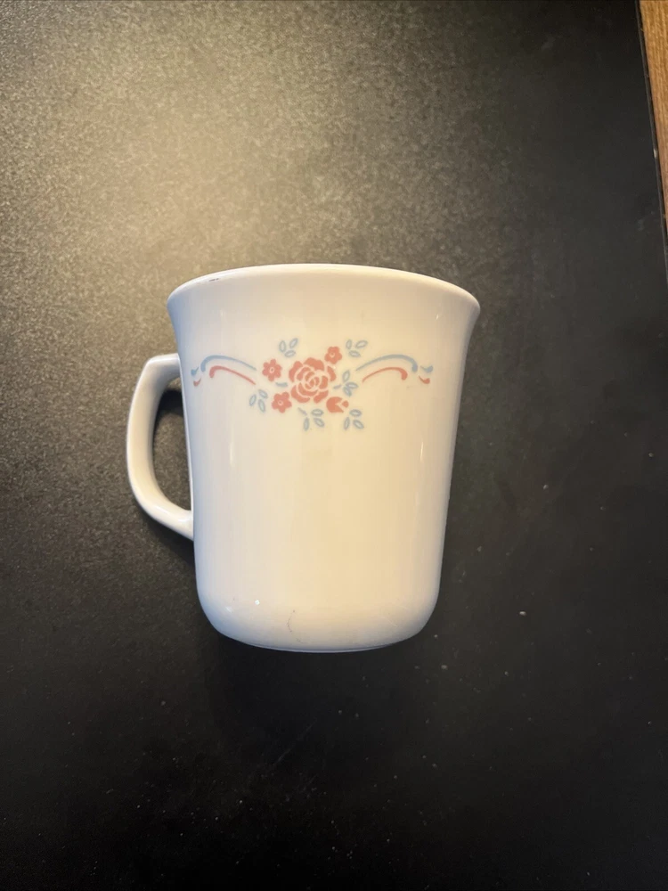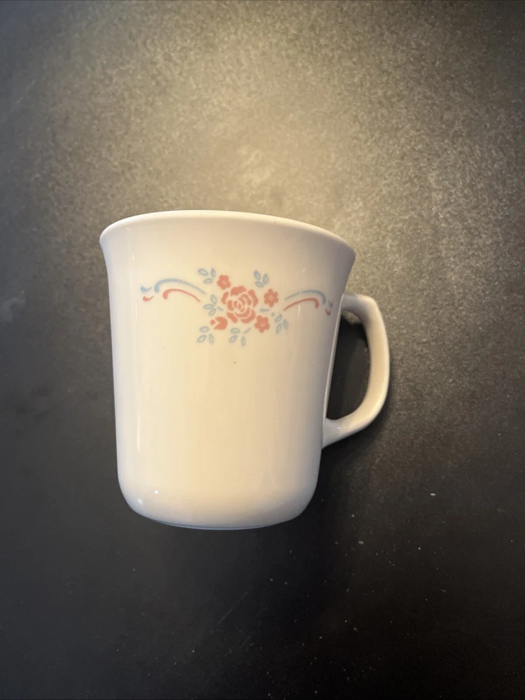 Add a touch of retro to your kitchen with this set of twelve Corning Ware Corelle English Breakfast coffee mugs. The sandstone/tan, pink & blue pattern is perfect for all occasions and the 8oz capacity is ideal for your morning cup of coffee or tea. The mugs are made of pressed glass and are microwave and dishwasher safe, making them convenient for everyday use. They also feature a handle for easy grip and are break/chip resistant. The vintage Corelle by Corning mugs were produced in the 1970s using a fused glass technique and have a glossy finish. They are a great addition to any kitchen and are perfect for serving guests. The set includes a total of twelve mugs and each mug has a diameter of 3.5 inches. They are an original product line and are printed with the brand's backstamp.