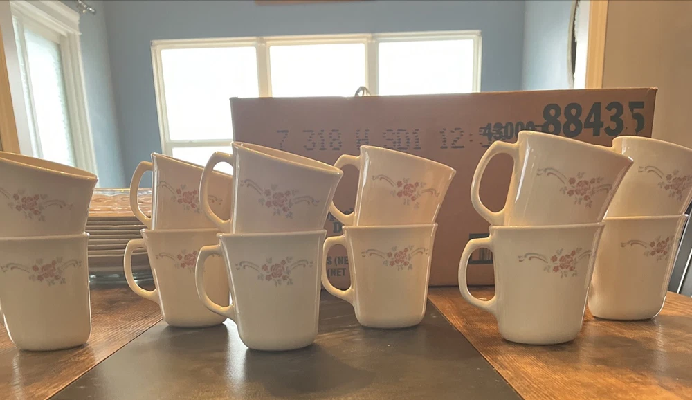 Set of 12 Corning Ware Corelle English Breakfast Coffee Mugs Cups Microwave Safe