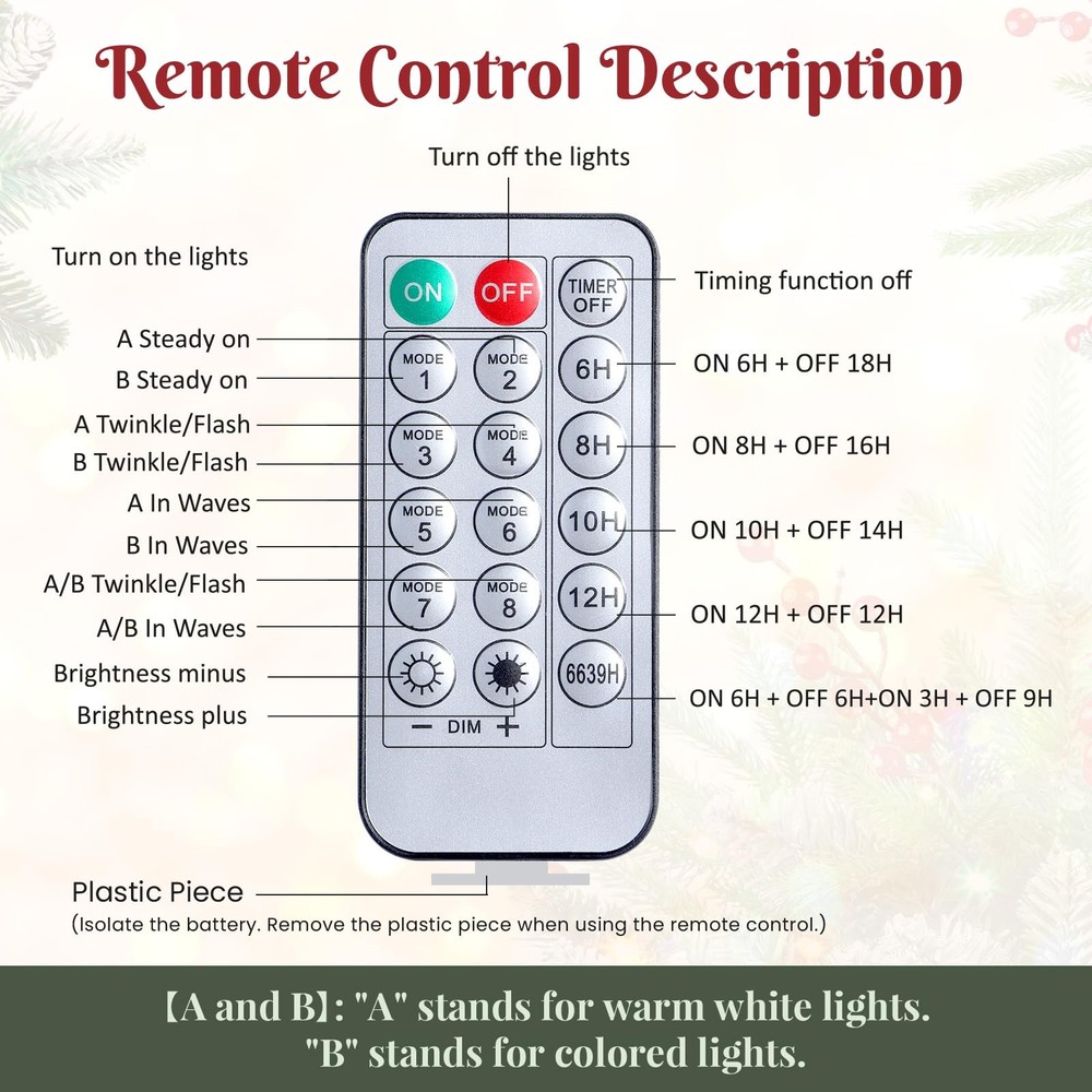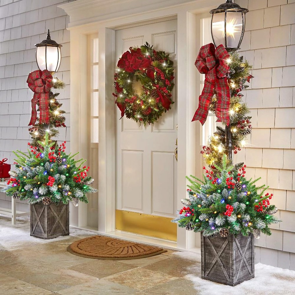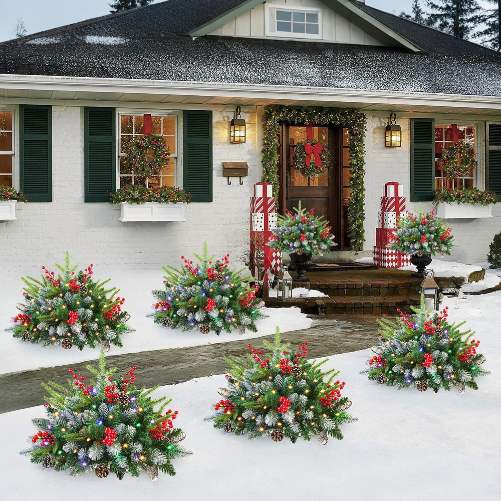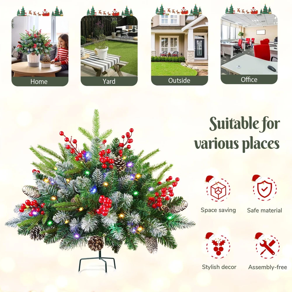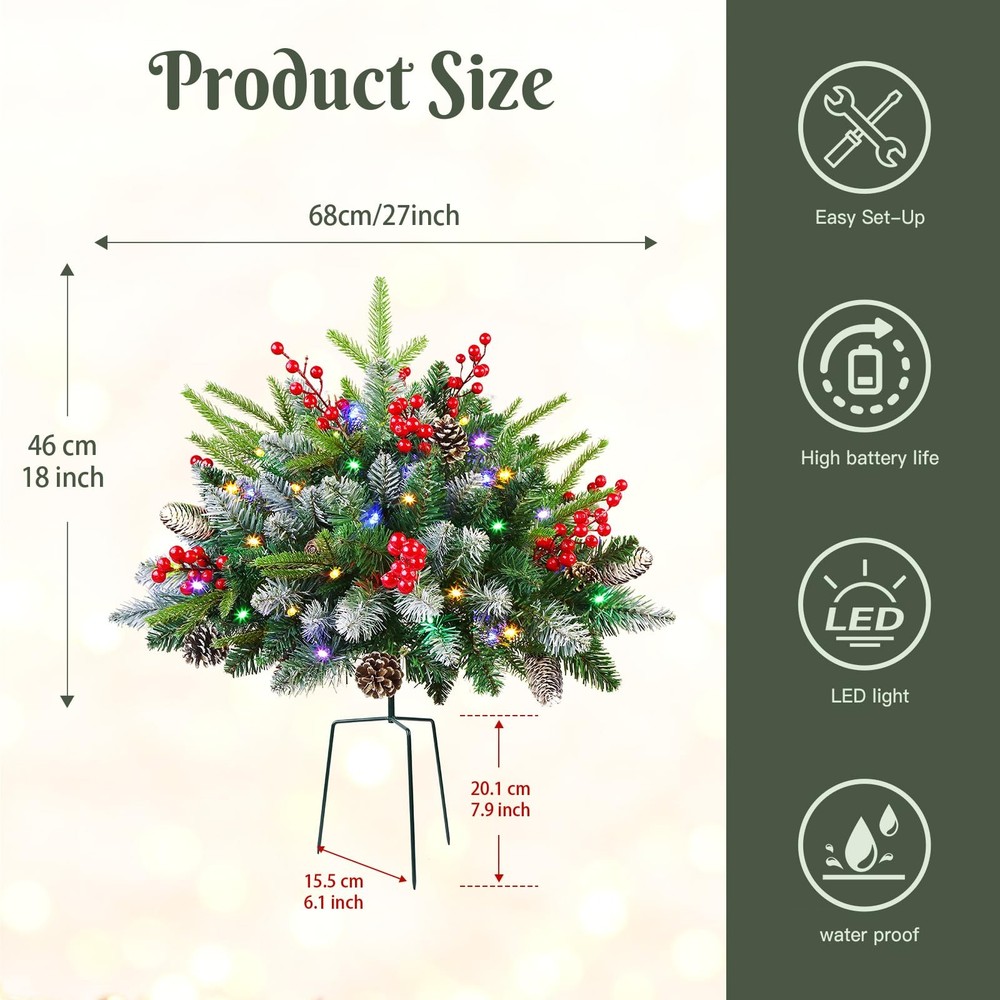 Set of 2 18 Inch Lighted Outdoor Christmas Tree with Remote, Timer, Multi-Color Lights, Battery Operated Pre-lit Frosted Pathway Artificial Urn Filler, Christmas Porch Decorations for Home Porch Yard đăPerfect ChoiceăIf you are looking for a beautifully shaped, high-quality mini artificial Christmas tree, consider this 18-inch prelit LED tree for your porch or yard Christmas decorations. Size: 18inch/1.5ft. đăRemote and Timer DesignăOur Christmas tree is equipped with a remote control, allowing you to set 23 timer lighting types or directly adjust the light brightness within a range of 10 meters, without needing to approach the tree. It offers 5 timer modes, so you can choose fixed lighting durations. đăPre-lit Lights&Pre-Decorated DesignăThe tree comes with 50 warm white and colored LED lights, featuring 8 lighting modes and 5 brightness levels. It comes pre-decorated with 8 bunch of red berries, 8 pinecones and 10 pine branches, with full branch tips and natural looking. đăBattery OperatedăWith a 3C battery box design, the simplified battery box eliminates the need for a plug-in outlet, allowing you to place the tree anywhere. This charming artificial mini Christmas tree adds a festive atmosphere to both indoor and outdoor settings. đăEasy to Assemble & Widely UseăThe Christmas tree is composed of two parts, making it very easy to assemble or disassemble.You could put those trees to home, or to outdoor, such as driveway or in pots by the front door, its durable tripod stake provide stability and helps keep your outdoor Christmas tree uprig
