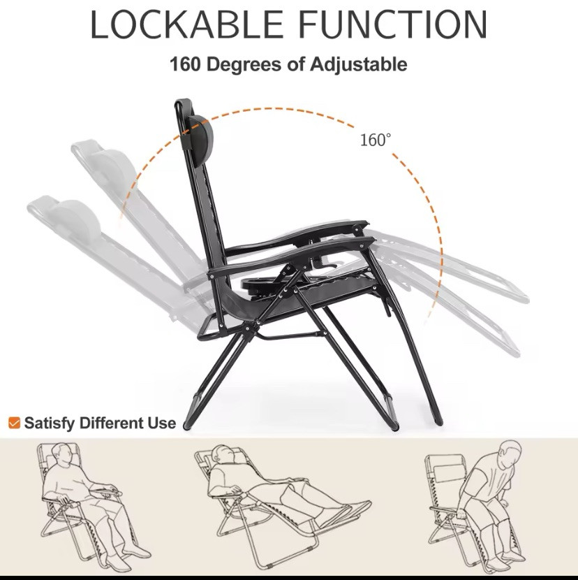 JHK Zero Gravity Set of 2 Portable Recliner Camping Patio Outdoor Garden Lounge Chair with Cup Holder Trays Adjustable Pillow