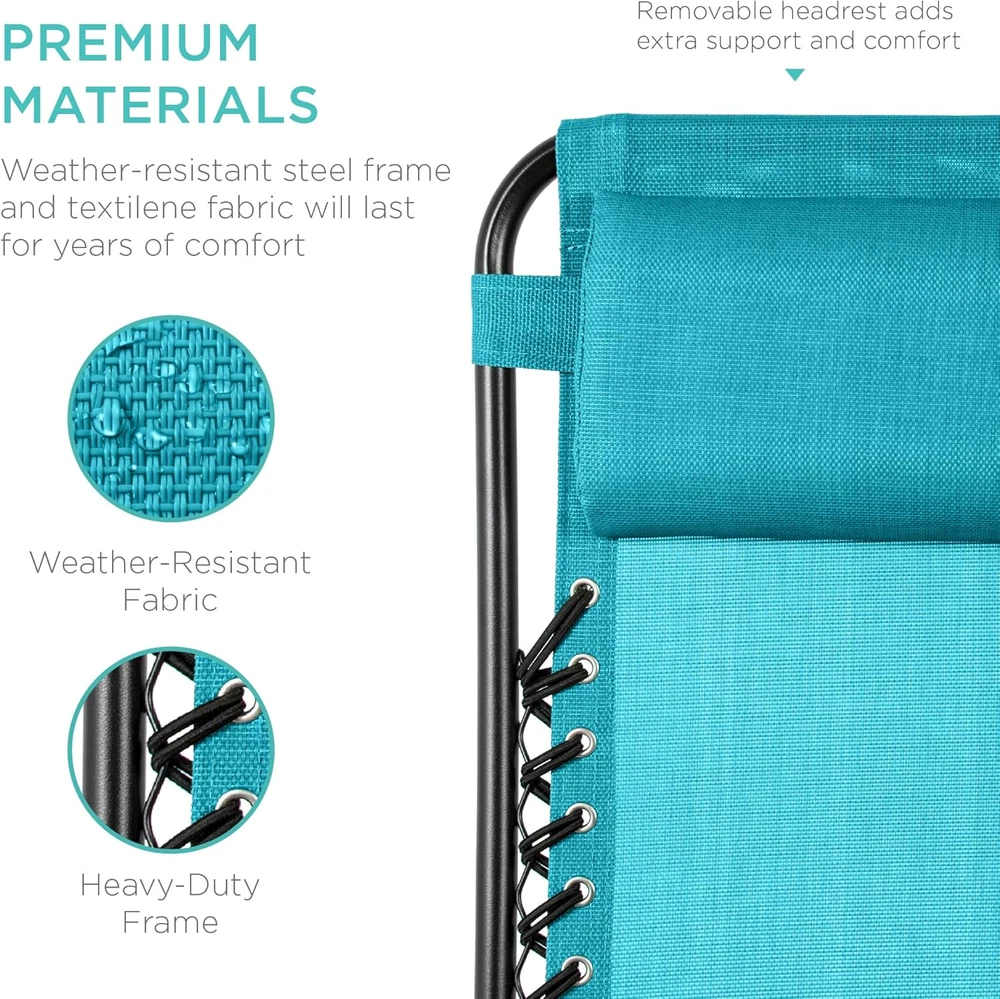 LOCKABLE RECLINING SYSTEM: Smoothly glides into an ergonomic zero-gravity position, with removable elastic cords that immediately adjust to your body's weight PORTABLE DESIGN: Lightweight, foldable design makes these an easy addition to your next trip to the park, beach, or your child's next sporting event CONVENIENT & DETACHABLE TRAY: Removable tray is built with two cup holders, a phone holder, and a tablet holder so you never have to be far from your favorite drinks or media devices! DURABLE CONSTRUCTION: Features a high, 250-pound weight capacity with flexible, low-wear textilene fabric for lasting quality! REMOVABLE, ADJUSTABLE HEADRESTS: Includes a removable, padded headrest for an extra element of adjustable comfort; OPEN DIMENSIONS: 32.5"-61"(L) x 25"(W) x 33.5"-44"(H); FOLDED DIMENSIONS: 38"(L) x 25"(W) x 6"(H) Product Description