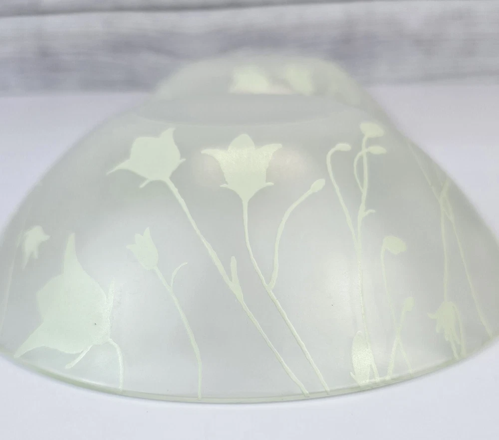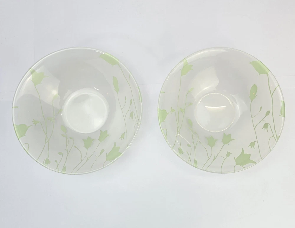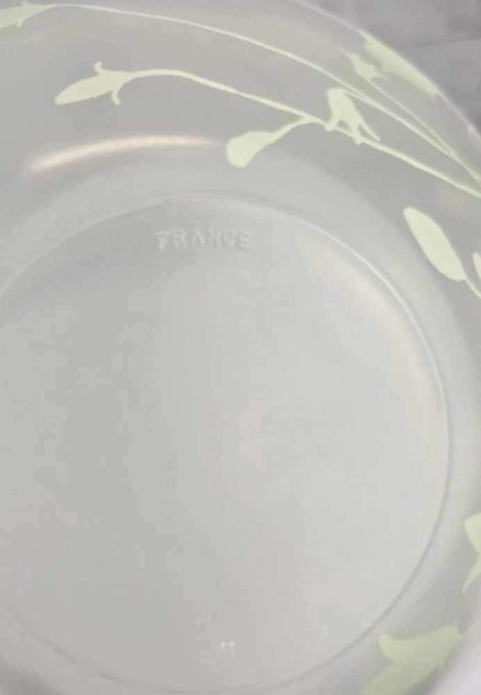 Set of 2 frosted glass bowls with green flowers , made in France. No chips or cracks. *You will receive the exact pictured item. *Please keep in mind this is in great condition but still a vintage / pre-owned item which may shows some flaws. *Please check enlarged photos for more condition details. ALL PHOTOGRAPHS FORM AN IMPORTANT PART OF THE DESCRIPTION *Colors may vary slightly depending on your screen Ship out next day as long next day is not sunday or holiday. _____________________ No returns acepted. If you have any inconvenience after receiving item please contacta me. I will try my best to help. IF I ACEPT THE RETURN ITEM MUST BE IN THE CONDITION IT WAS SENT WITHOUT ANY DIRT, SPOTS OR SINGS OF WEAR. TAGS MUST BE ATTACHED. BUYER IS RESPONSIBLE FOR RETURN SHIPPING FEE. In case of refunds, only will be issue after item arrives back and inspected