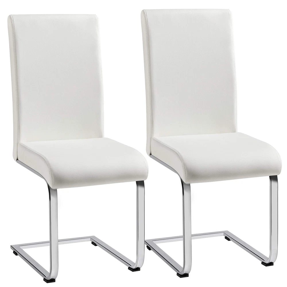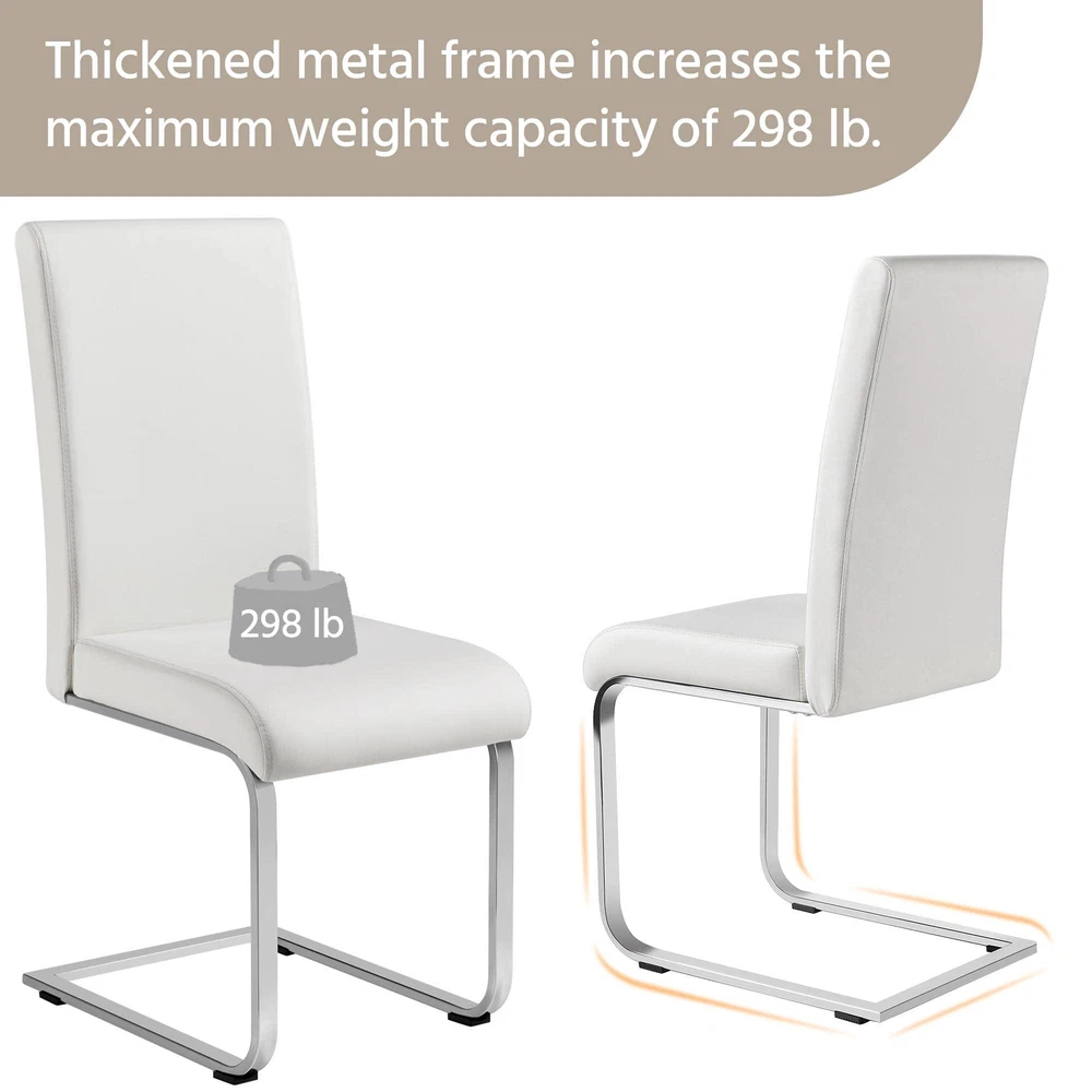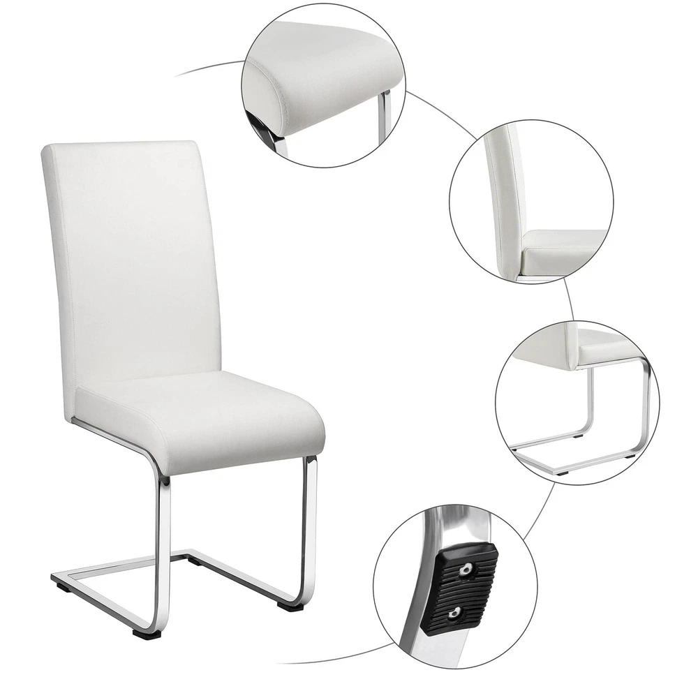 Comfortable: ergonomic curved back and a soft padded seat provide day-long comfort without feeling back pains, so you will not feel tired even after long-time sitting; good quality PU leather seat really feel soft when you sit on it. High Quality: the office chair is made of premium PU leather, sponge, electroplated iron, plywood, and non-woven fabric, and the legs are chrome-plated, sturdy and durable to use; solid chair is sturdy enough to hold up to 135 kg / 297.6 lb Easy cleaning: The water-resistant PU leather surface can be easily wiped clean with a damp cloth and mild cleansers. Thoughtful: anti-scratch pad can can prevent accidental wear of the desk chair and can avoid scratching the floor and prevent sliding. Versatile: dining chair is perfectly suitable for dinner, meeting, hotel, restaurants, wedding banquet, celebration, and other ceremonial decorations, can be used in dining room, kitchen, drawing room and office