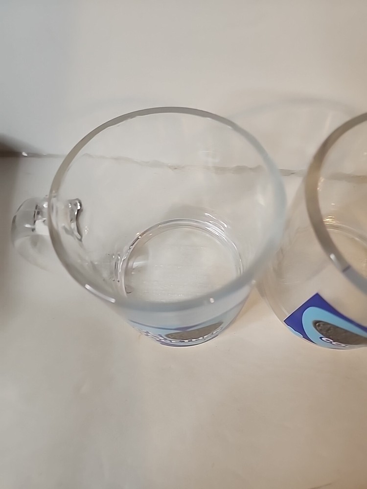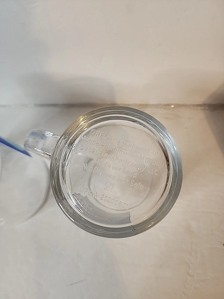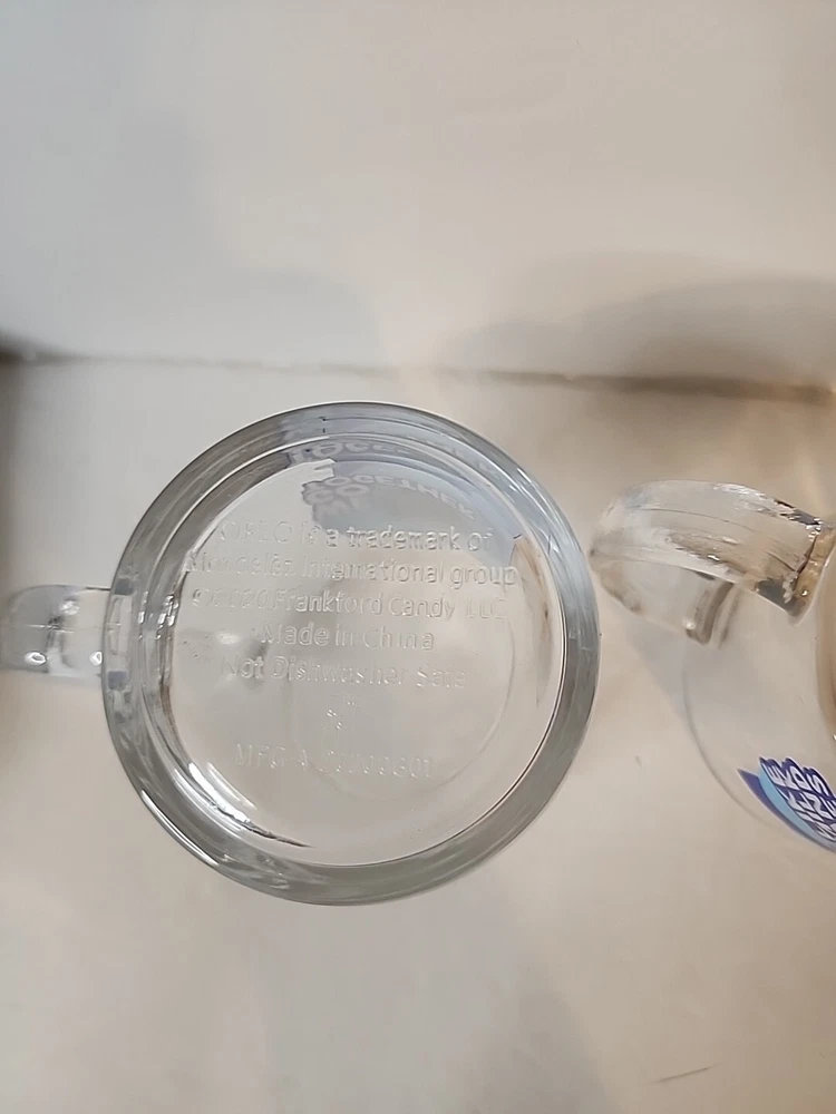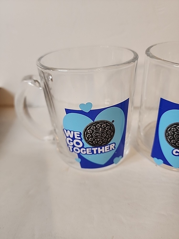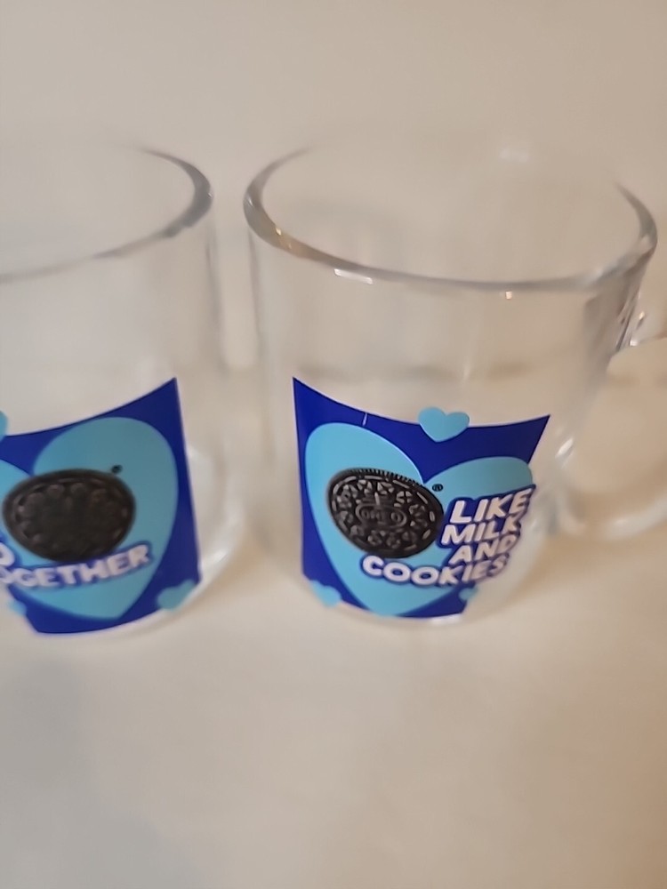 Enjoy your favorite hot or cold beverage in style with this set of two matching Oreo glass mugs. These mugs feature a round shape and clear color, perfect for any occasion. Made of high-quality glass and manufactured in 2022, they come with a handle for easy grip. These mugs are perfect for teens, unisex adults, and unisex kids who love food and drink. They are original and licensed by Oreo, a trusted brand in the industry. Whether you're collecting or just looking for a nice set of mugs, these are a great addition to your collection.