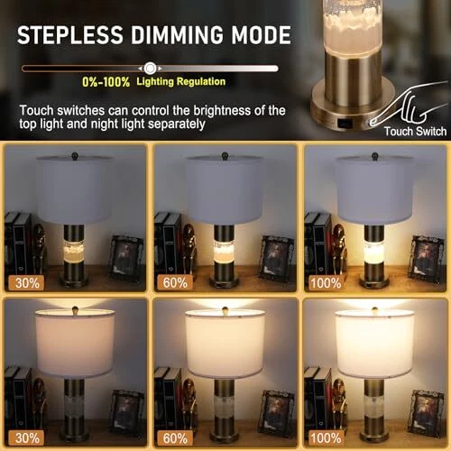 Menu 1. We require immediate payment. 2. We currently accept payment via eBay managed payments only. 3. Once payment is cleared, we will dispatch your shipment within 1-3 business days. Please refer to the "Shipping" tab for more information regarding shipping speed to your destination. Set of 2 Gold Bedroom Lamp for Nightstands, Touch Table Lamps, USB Charging Ports, with Stepless Dimming Mode for Living Room, Modern Snow and Clouds Crystal Bedside Lamps Product description Touch-Controlled & Stepless Dimming: This touch lamp for the nightstand features advanced touch control technology with stepless dimming. Simply touch the lamp to effortlessly adjust the brightness, and eliminate the hassle of traditional switches, making it easy to create the perfect ambiance for your bedroom or living room. Say goodbye to fumbling for switches in the dark. Convenient USB Charging Ports: The Nightstand Table Lamp is designed with USB charging ports, allowing you to charge devices like smartphones and tablets simultaneously. Whether the lamp is on or off, the charging ports ensure that your devices are always powered up, making your daily life more convenient. Elegant Design with High-Quality Materials: Each gold lamp is crafted with a luxurious metal base and a beautiful fabric shade, and the crystal cloud Snow Mountain night light in the middle brings sophistication to any decor style. The stunning crystal table lamp adds a touch of glamour to your living room or bedroom, ensuring that it serves as both a functional light source and a stylish decor piece. Energy-Efficient LED Bulbs Included:Our crystal table lamps are equipped with two high performance energy saving 9W A19 LED bulbs, eliminating the hassle of finding compatible lighting, energy saving and durable. These 3000K warm white bulbs use less energy than traditional incandescent bulbs. Provide a warm glow so you can enjoy soft, natural light without flickering and glare, and enjoy better eye protection with our crystal table lamps without worrying about harmful effects. Enjoy long-lasting lighting that helps reduce energy waste and brighten your home. Easy Installation & Customer Support: Installing this touch lamp for a nightstand is straightforward and does not require professional skills. It takes only 6 steps to complete the installation in 5 minutes. We offer excellent customer service to ensure that if you encounter any issues during use, you can receive timely assistance, allowing you to enjoy a seamless lighting experience with this beautiful lamp. PLEASE MESSAGE US IF YOU HAVE ANY OTHER QUESTIONS, AND MANY THANKS FOR READING ALL OF THIS. Copyright ©#. All Rights Reserved.