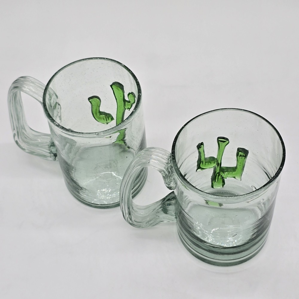 Set of 2 Large Hand-Blown Beer Mugs Saguaro Cactus Brand : Unbranded Description: Hand-blown Mugs Set of 2 Condition details : No flaws found Country of Manufacture: Not marked, most likely Mexico MEASUREMENTS are APPROXIMATE TAKEN IN INCHES Height: 5 3/4" Width at mouth: 3 1/2" °°° Feel free to message us with any questions