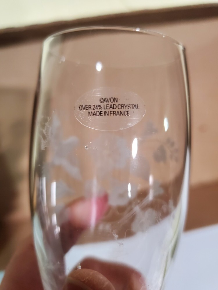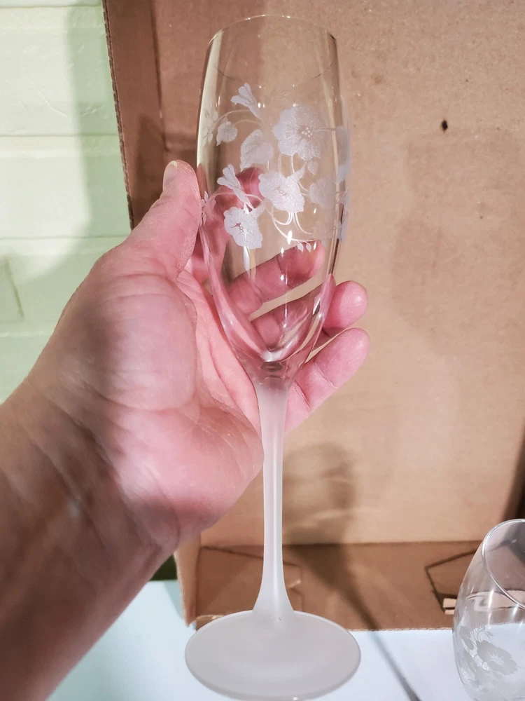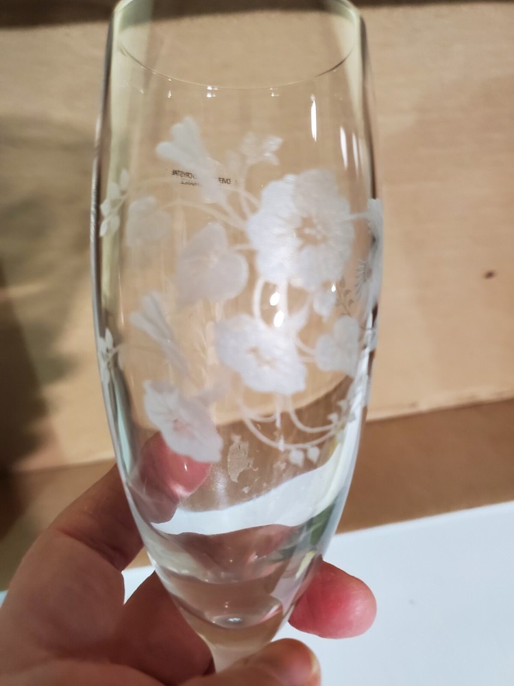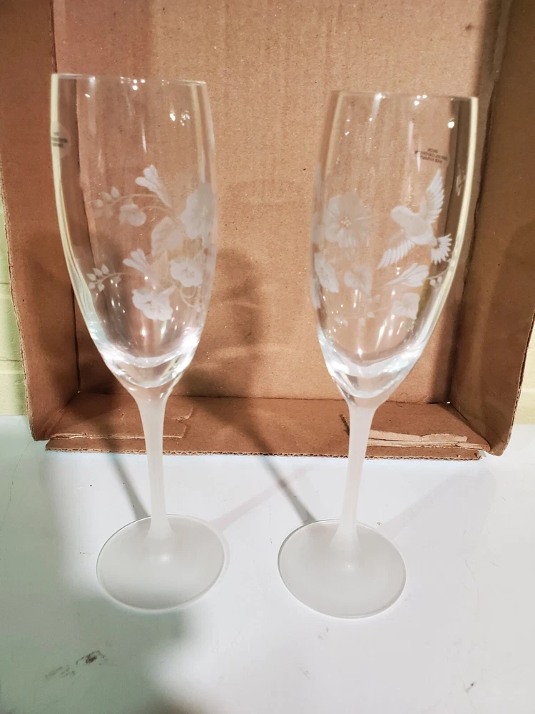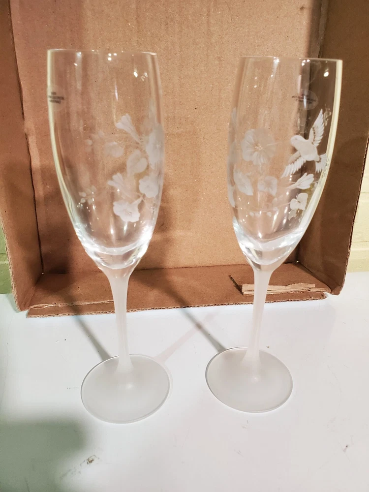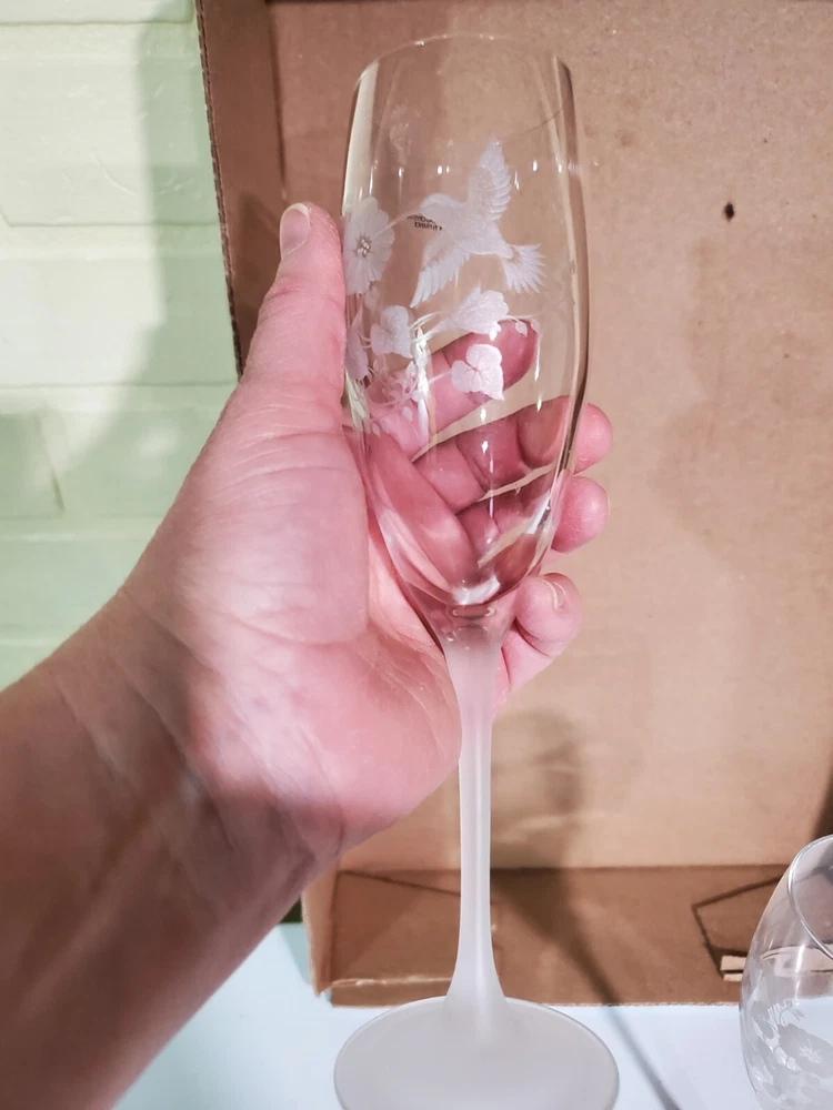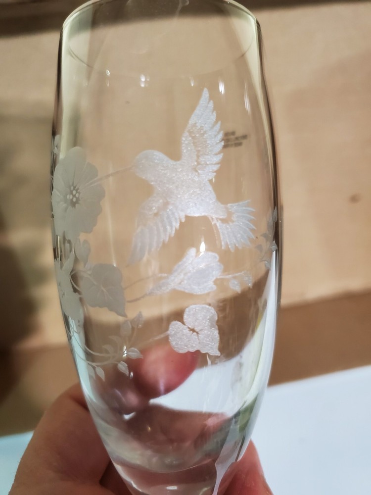 Set of 2 Lead Crystal Wine Glasses with Hummingbird & Flower Design