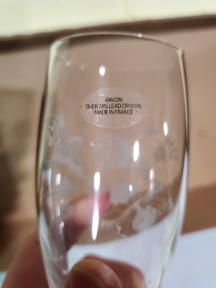 Vintage Saint Louis METZ Crystal Champagne Coupe Glass with Etched Deco Design