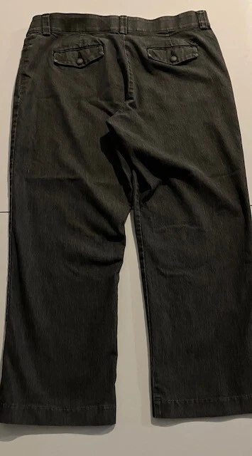 Set of 2 Lee Platinum Label Plus Size Women's Pants Size 20W Petite- Gray. Pants are light gray and dark gray with a subtle pin striping pattern. Pants are plus size relaxed straight fit and made with a cotton blend- 72% cotton, 26% polyester and 2% spandex. Measures 28" inseam and waist is 42". Pants show minimal wear. Soft fabric with stretch- fabric covered button and zip closure. Has two front pockets and two back pockets with fabric covered button closure. Stretch fabric lined no gap waistband. In good condition for age and use. No rips or tears. No stains. See Photos.