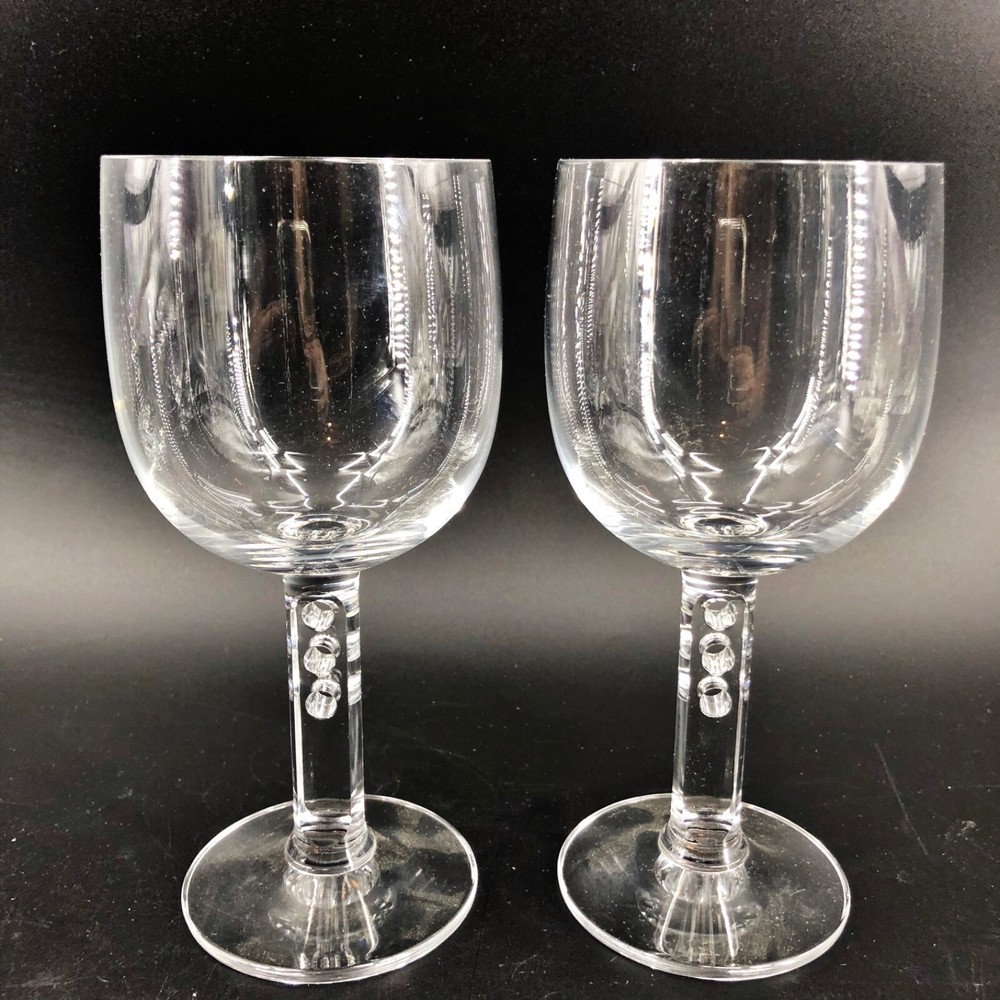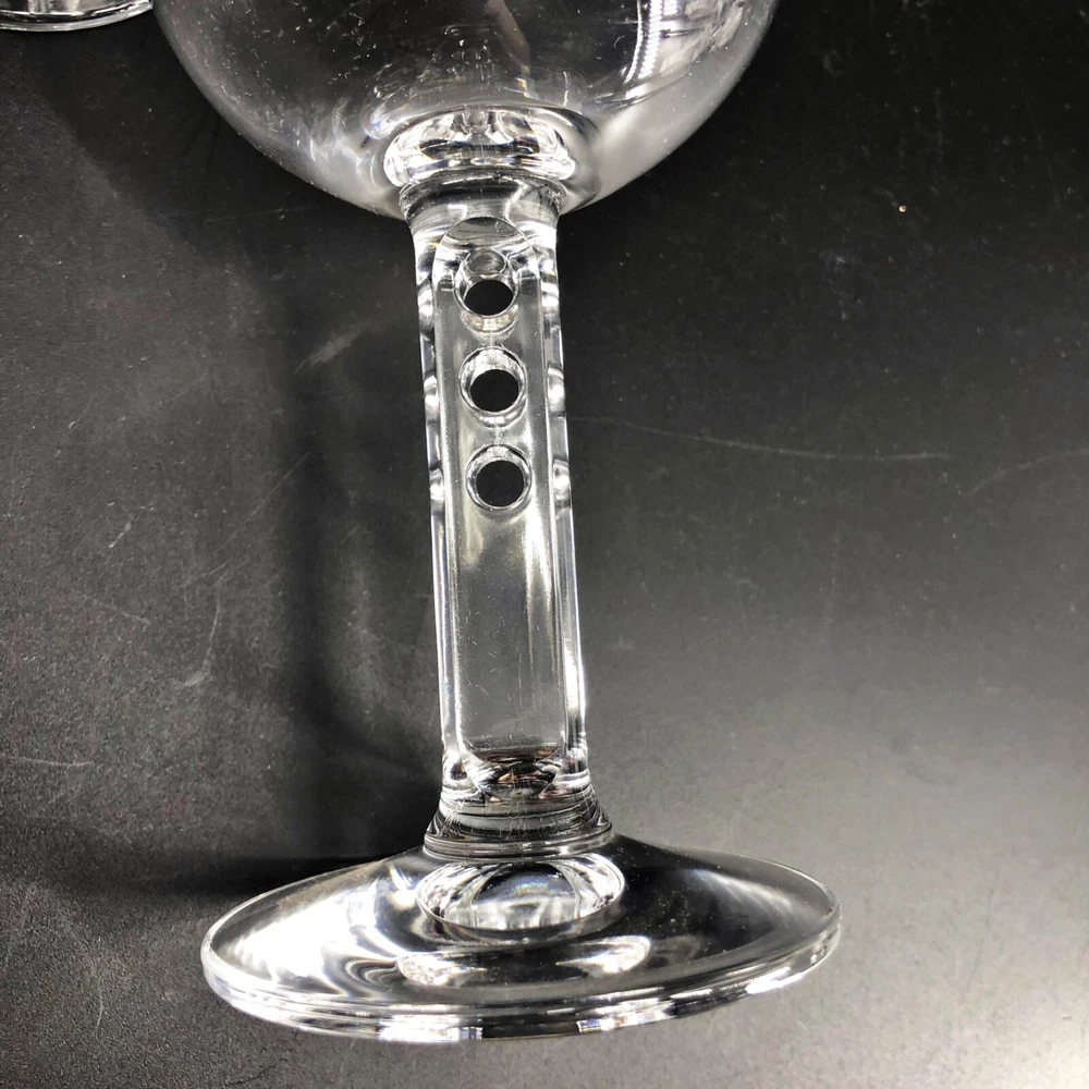Set of 2 Wine Glasses w/ Contemporary Stem Three Center Holes in Design Stemware