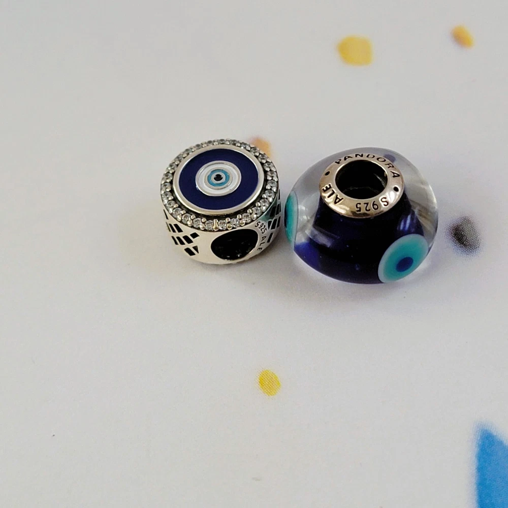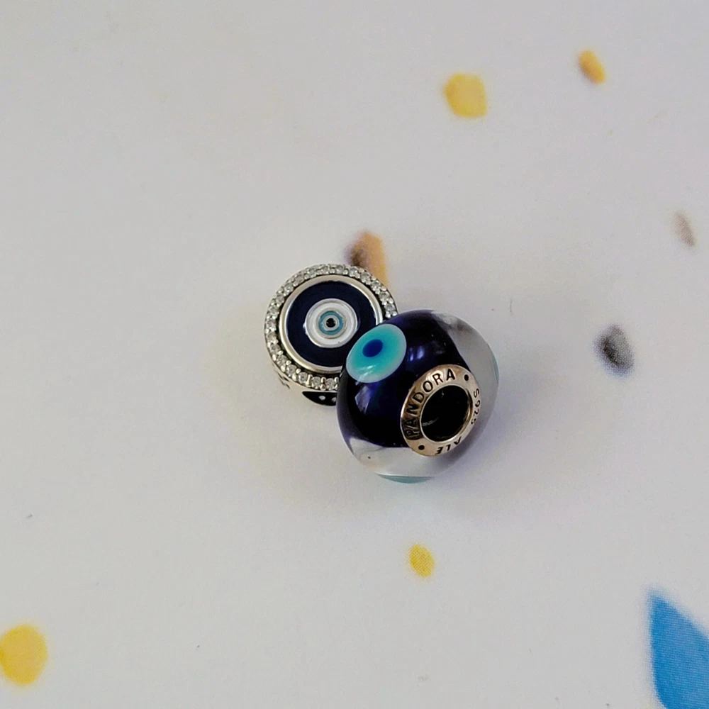 Set of 2 New Pandora Authentic Evil Eye Dangle and Murano Charms The charms are new, never worn. Some charms are used for pictures and advertising purposes only. All charms come in Jewelry Pouch with Pandora logo on it. Bracelet and Box NOT INCLUDED.