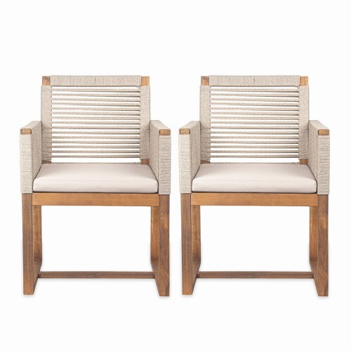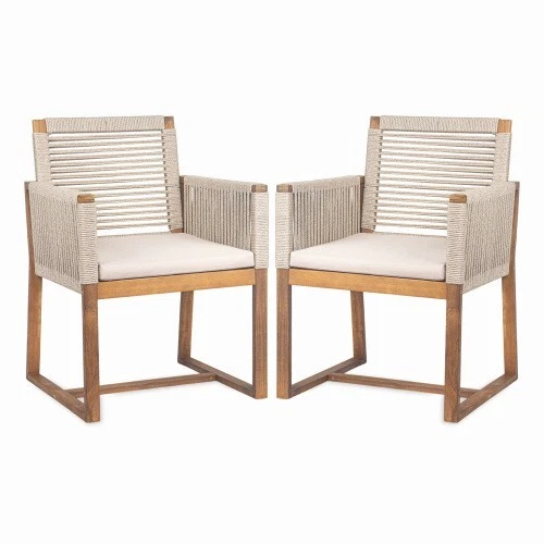 Set of 2 Outdoor Patio Armchairs with Washable Cushions for Stylish Dining