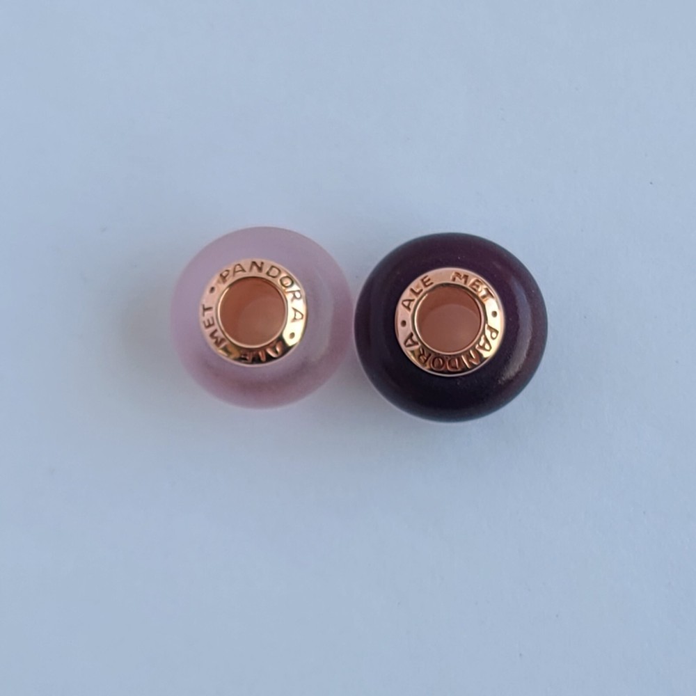 Set Of 2 New Pandora Authentic Mate Murano Charms Purple and Pink The charms are new, never worn. Some charms are used for pictures and advertising purposes only. All charms come in Jewelry Pouch with Pandora logo on it. Bracelet and Box NOT INCLUDED.