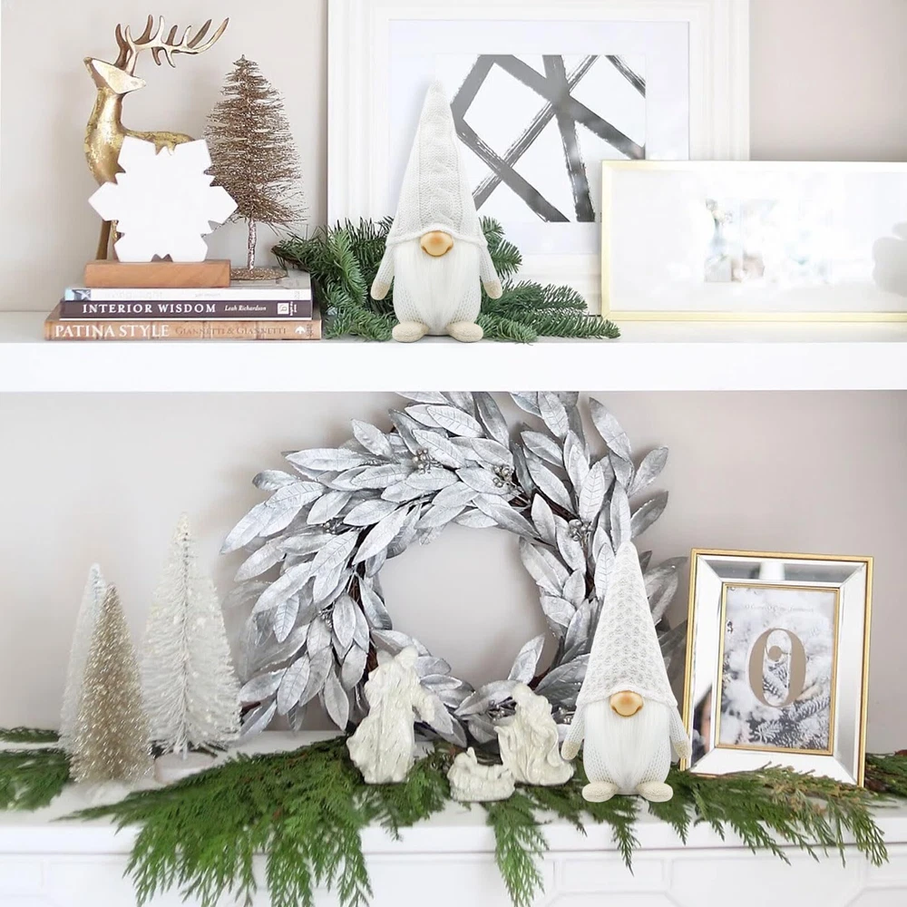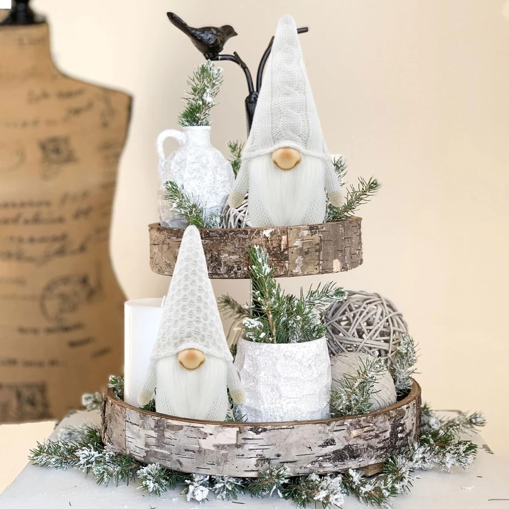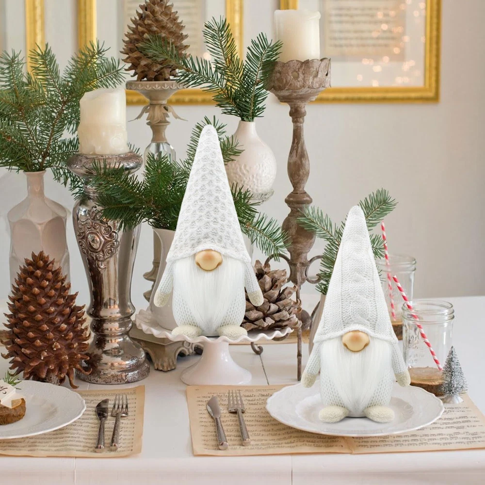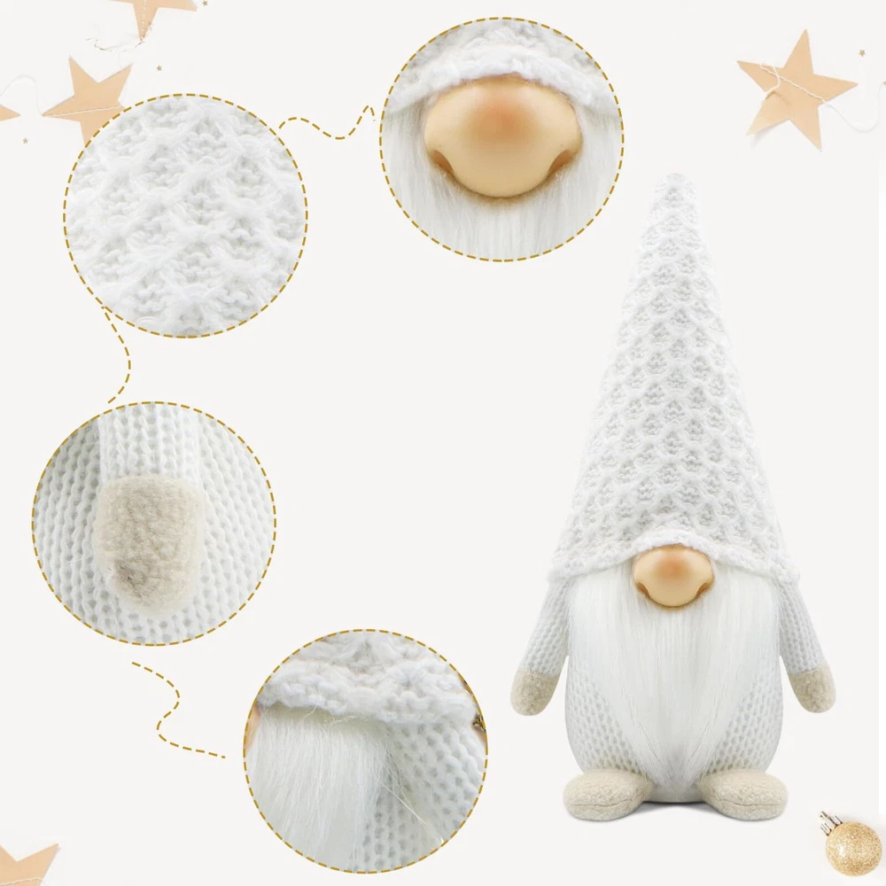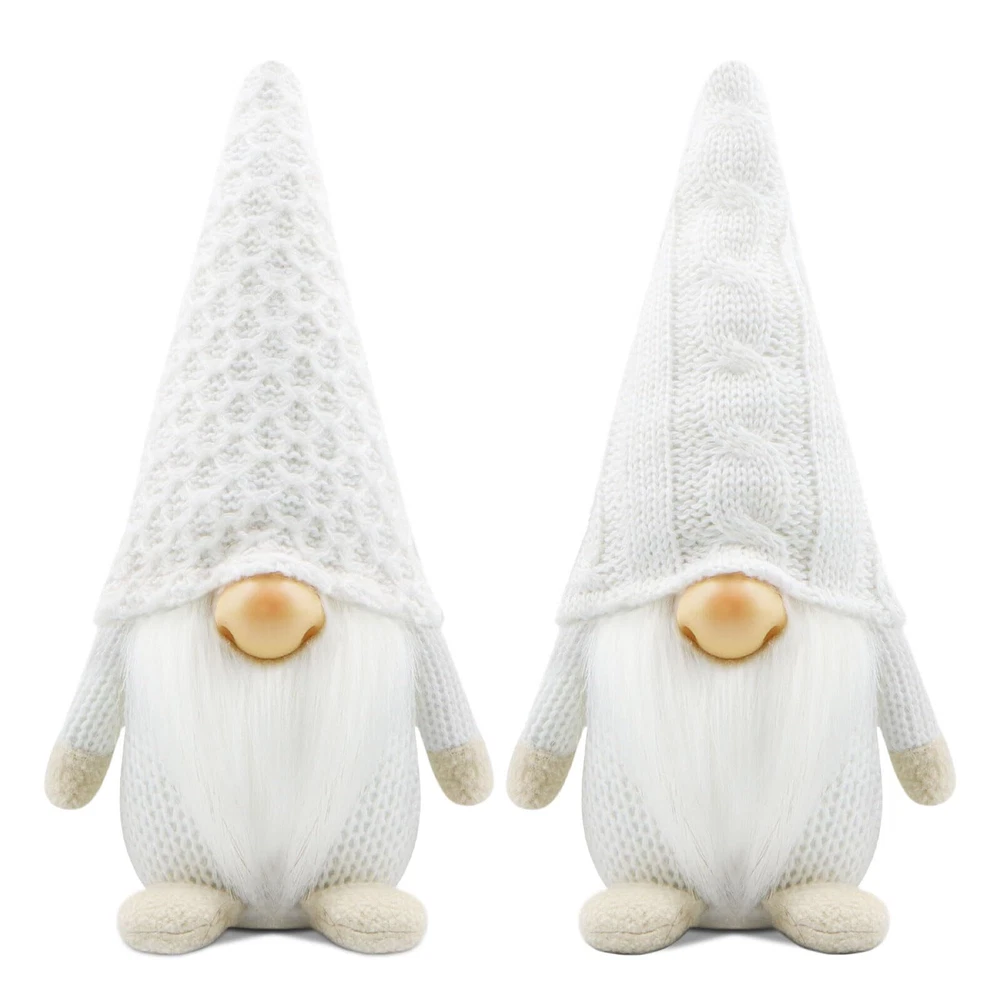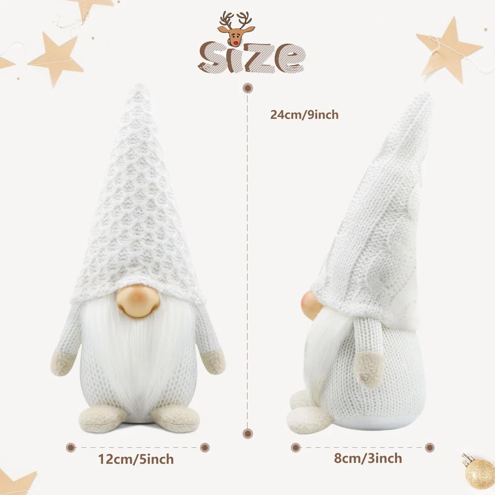 Set of 2 White Christmas Gnomes Decorations Handmade Gnome Plush Stuffed Xmas...