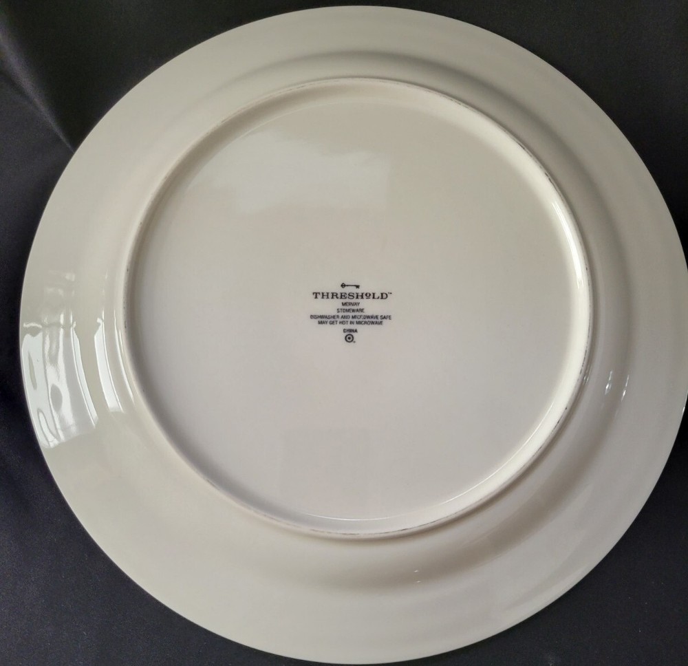 Threshold Dinner plate is white with a gray star/medallion center and measures 10 5/8" in diameter. Check out my other items, I combine shipping! Shipping Your item(s) will be shipped within 1 business days of payment received. Delivery confirmation is included on packages shipped to a US destination. International Shipping All duties or tariffs, if any, are the responsibility of the buyer and seller does not have any control over these charges or delays due to customs inspections. Returns Buyer to pay return shipping unless the item is not as described. Please contact me if you have any questions.