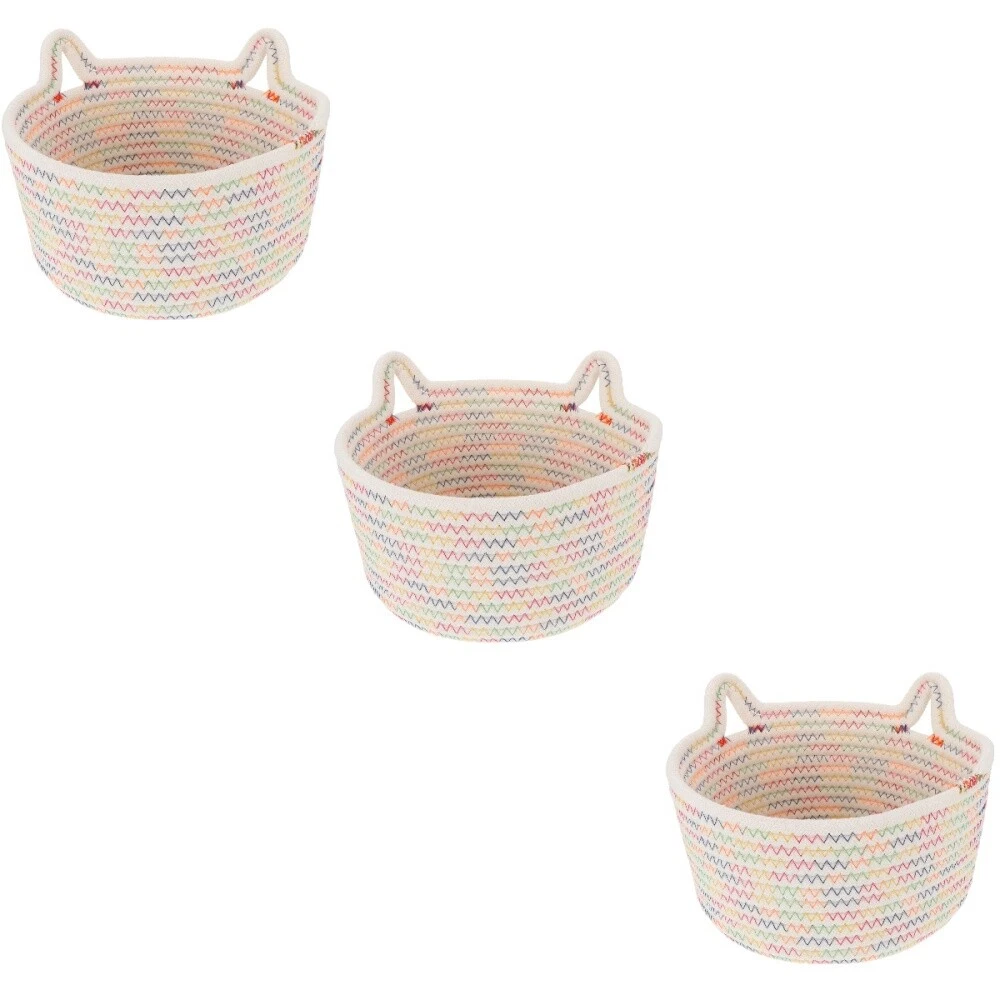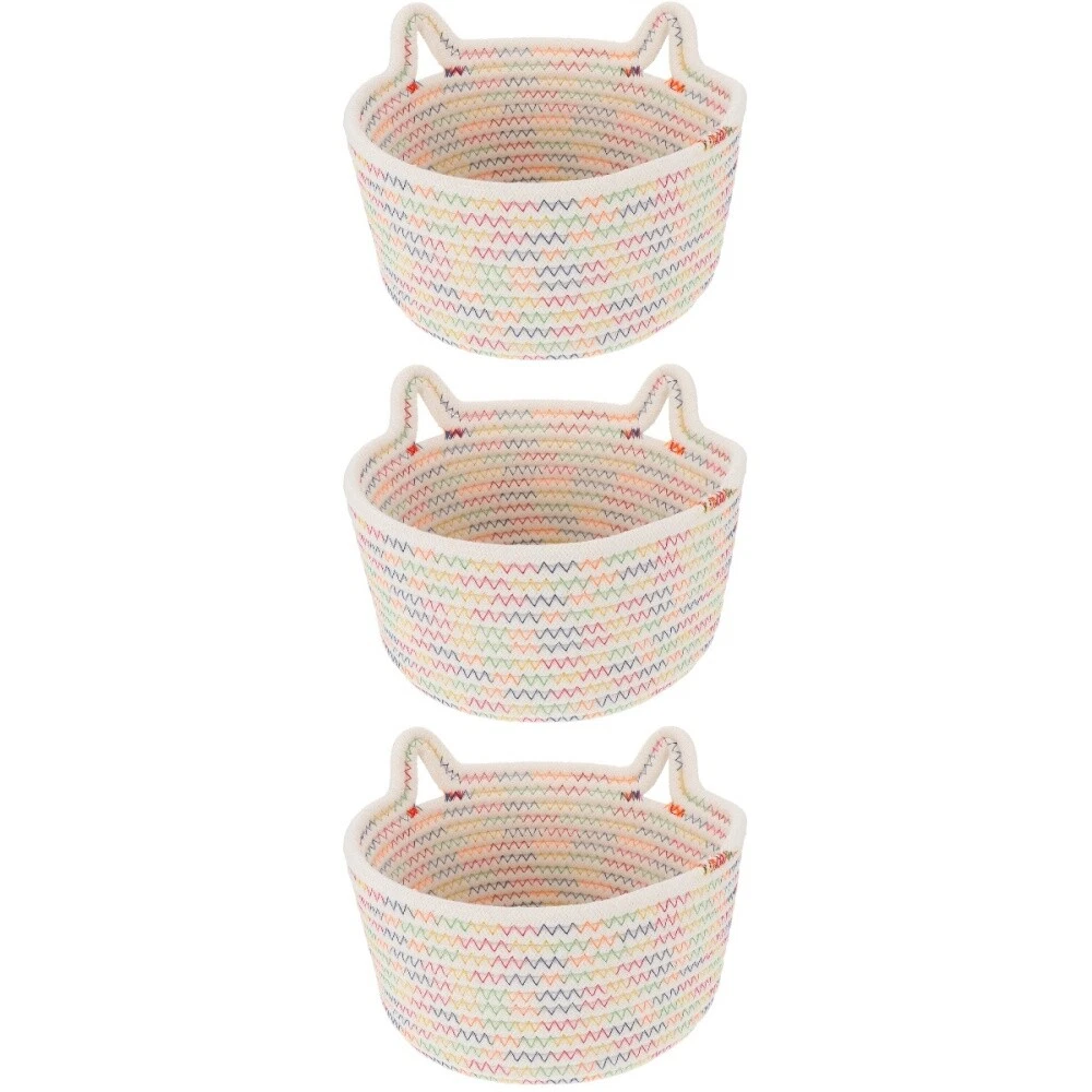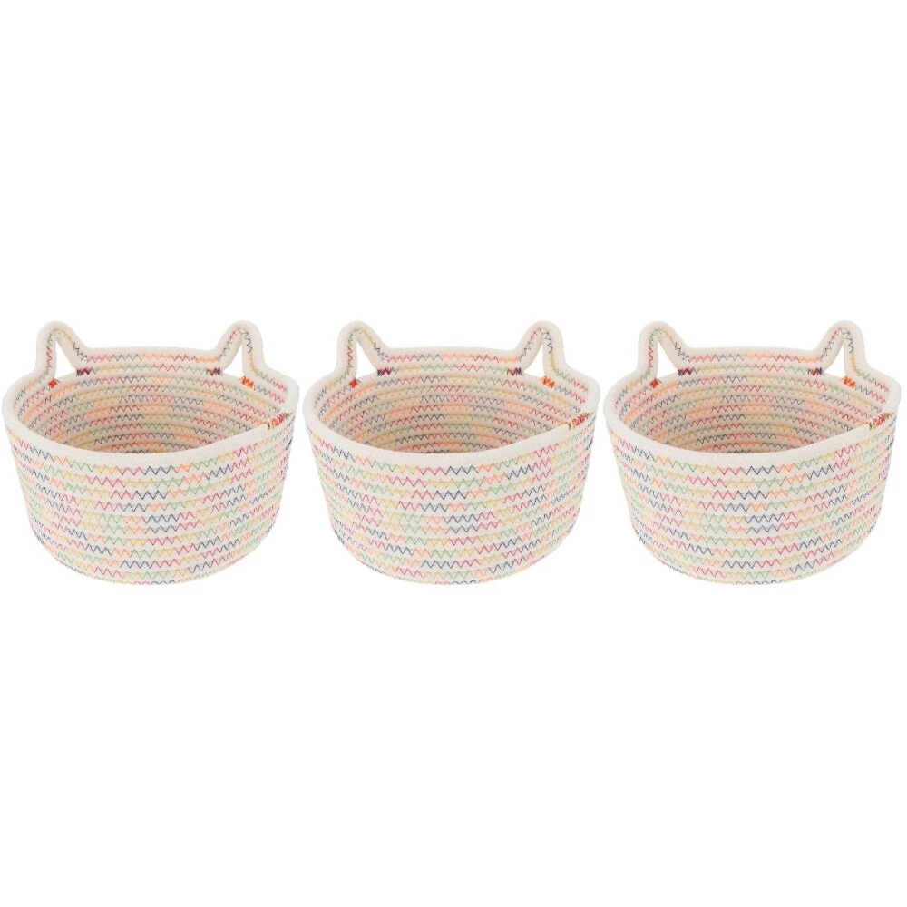 Set of 3 Bins Storage Box Space-saving Cotton Rope Basket Baby