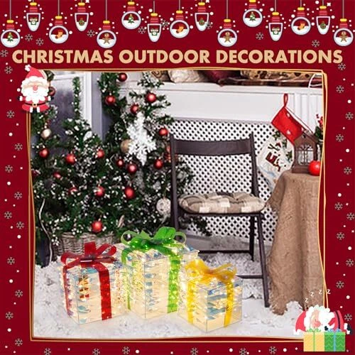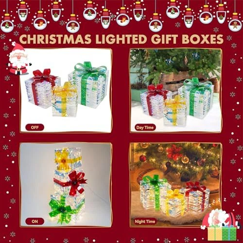 30 Days Return Policy Fast Delivery Trusted seller Set of 3 Christmas Lighted Gift Boxes Plug-in 60 Led Light Up Box Ornament for Christmas Decorations Indoor Outdoor Yard Xmas Tree Holiday Party Lawn Porch Home Decor (PVC) Product Description Dazzling Christmas Decor: The Christmas gift box set includes three distinctively crafted gift boxes of varying sizes, ranging from large (7.5" x 7.5" x 7.1"), medium (6.1" x 6.1" x 6"), to small (5.1" x 5.1" x 5"). Each box is adorned with a red bow and pinecone berries. Safe and Durable: Crafted from high-quality materials, Christmas yard decorations gift boxes with their weather-resistant design, you can count on them to shine brilliantly throughout the holiday season. We prioritize safety and quality. These Christmas decorations indoor home decor gift boxes are UL-certified, ensuring your peace of mind while they adorn your home Effortless Assembly: Simple setup in minutes - just unfold, fix the bow, and plug in. No tools are required, so you can enjoy your decorations in no time. Share the holiday spirit by gifting these charming outdoor holiday decorations boxes to family and friends. They make a delightful present that adds a touch of magic to any space Brilliant Energy-Efficient LED Lights: One of the standout features of these outside Christmas decorations gift boxes is their enchanting LED illumination. Energy-efficient and long-lasting, these lights will brighten up your space with a warm, inviting glow. The 60 LEDs are meticulously placed to ensure even distribution, creating a harmonious display of light Versatile Decoration: These outdoor Christmas decor gift boxes are more than just decorations; they are a symbol of the joy and warmth of the holiday season. Whether you want to decorate a living room, office, storefront, porch, garden, or entryway, these lighted outdoor Christmas decorations gift boxes are versatile enough for both indoor and outdoor use and will create a cheerful and inviting atmosp for all to enjoy Shipping Returns Payment Shipping Shipping is FREE to all addresses other than APO/PO boxes in the lower 48 states. All our stock ships from US-based warehouses. Shipped via USPS or UPS (depending on location and package weight) Unless stated otherwise, all orders will ship within 24-72 hours of your payment being processed. Check our feedback to see the great reviews of FAST shipping we offer. Returns As our valued customer, we will do our best to make sure the product you receive arrives to you on time and as expected. If you are not satisfied with your purchase, please contact us within 30 days of receiving your order to process a return. Payment We currently accept payment via eBay managed payments only. Once payment is cleared, we will dispatch your shipment within 1-3 business days. Please refer to the "Shipping" tab for more information regarding shipping speed to your destination.