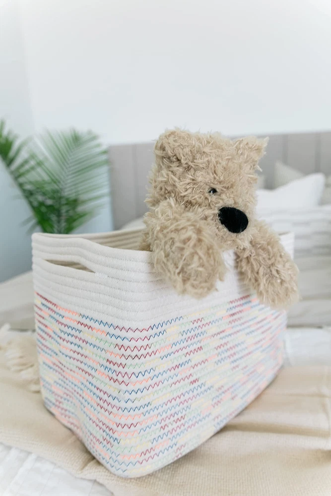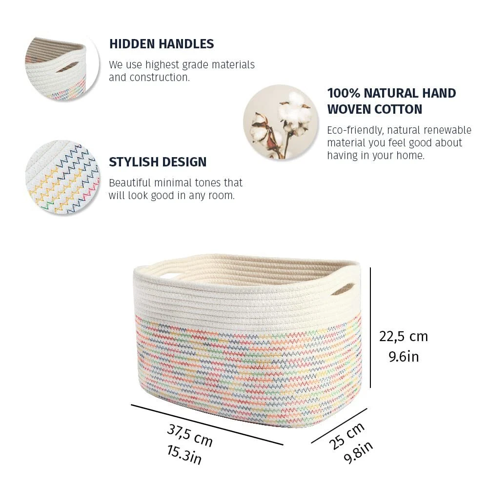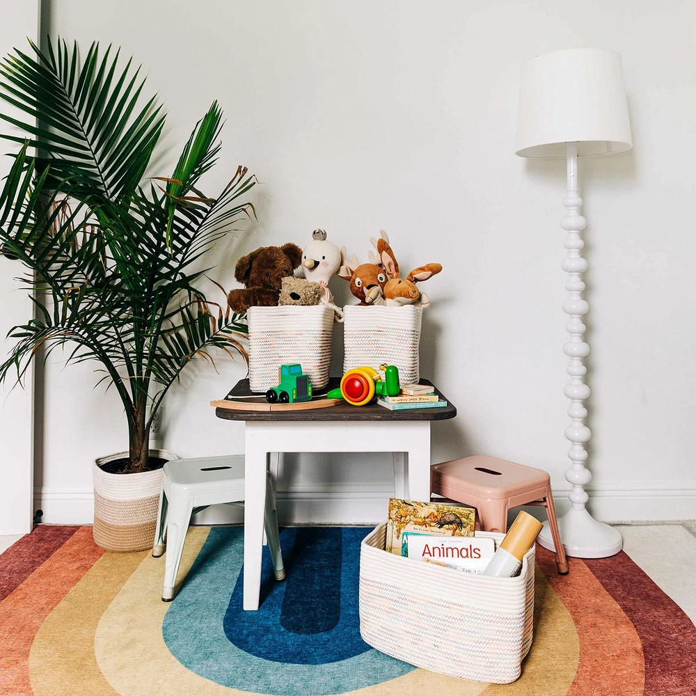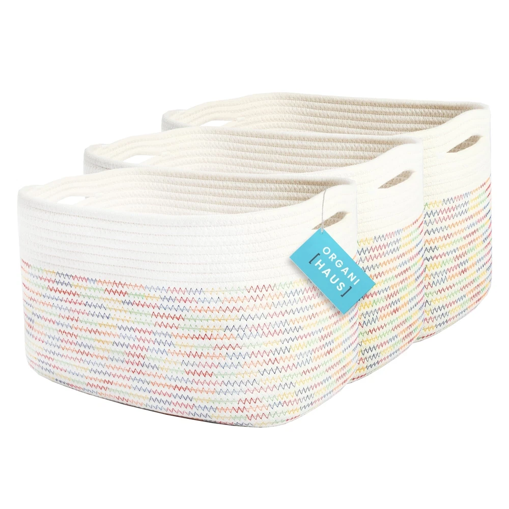 Set of 3 Cute Rainbow Storage Basket for Toys & Cloths, Cotton Rope Bins for ...