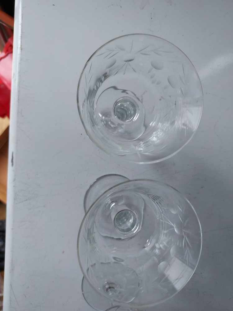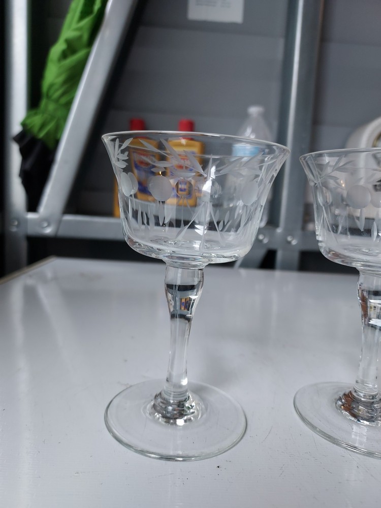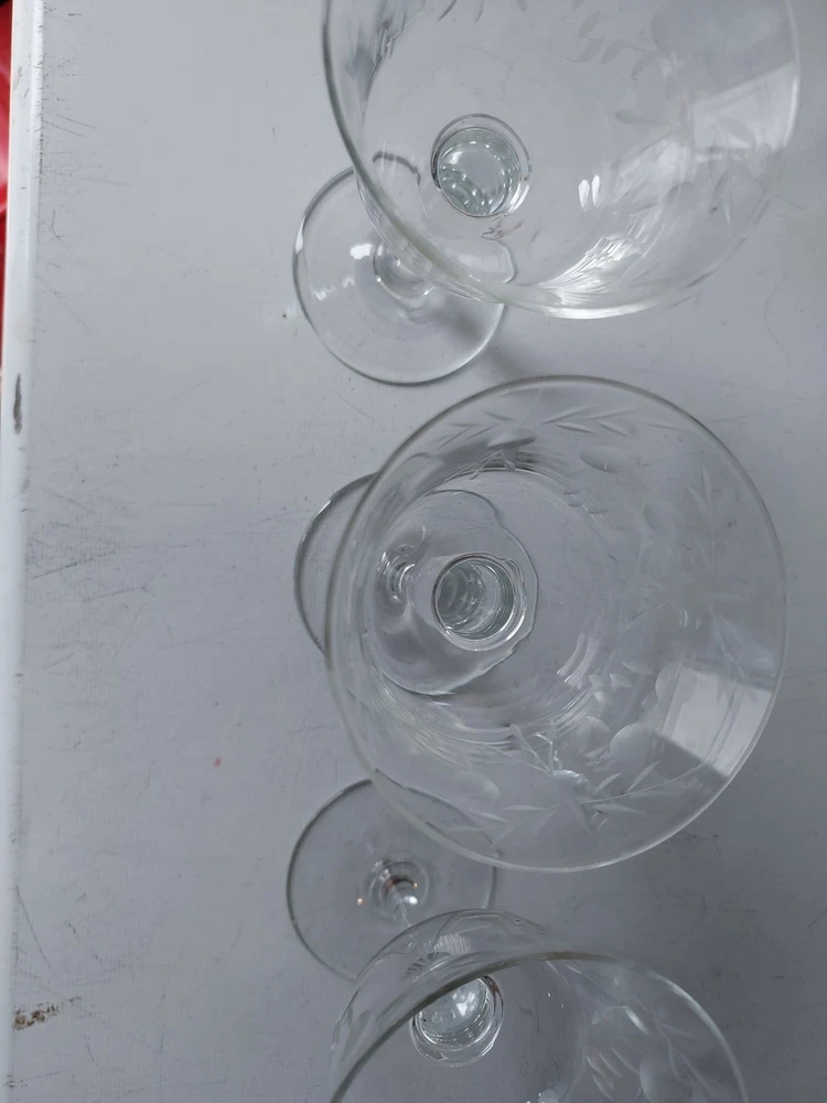 Elevate your home bar with this set of three beautifully etched cocktail glasses. Each glass stands 4 and one half inches tall and is 3 inches wide, perfect for your favorite mixed drinks. The clear glass allows you to see the vibrant colors of your drink while the etched features add a touch of elegance to your presentation. These glasses are perfect for any occasion, whether a cozy night in or a formal dinner party. Add them to your collection today and impress your guests with your hosting skills.