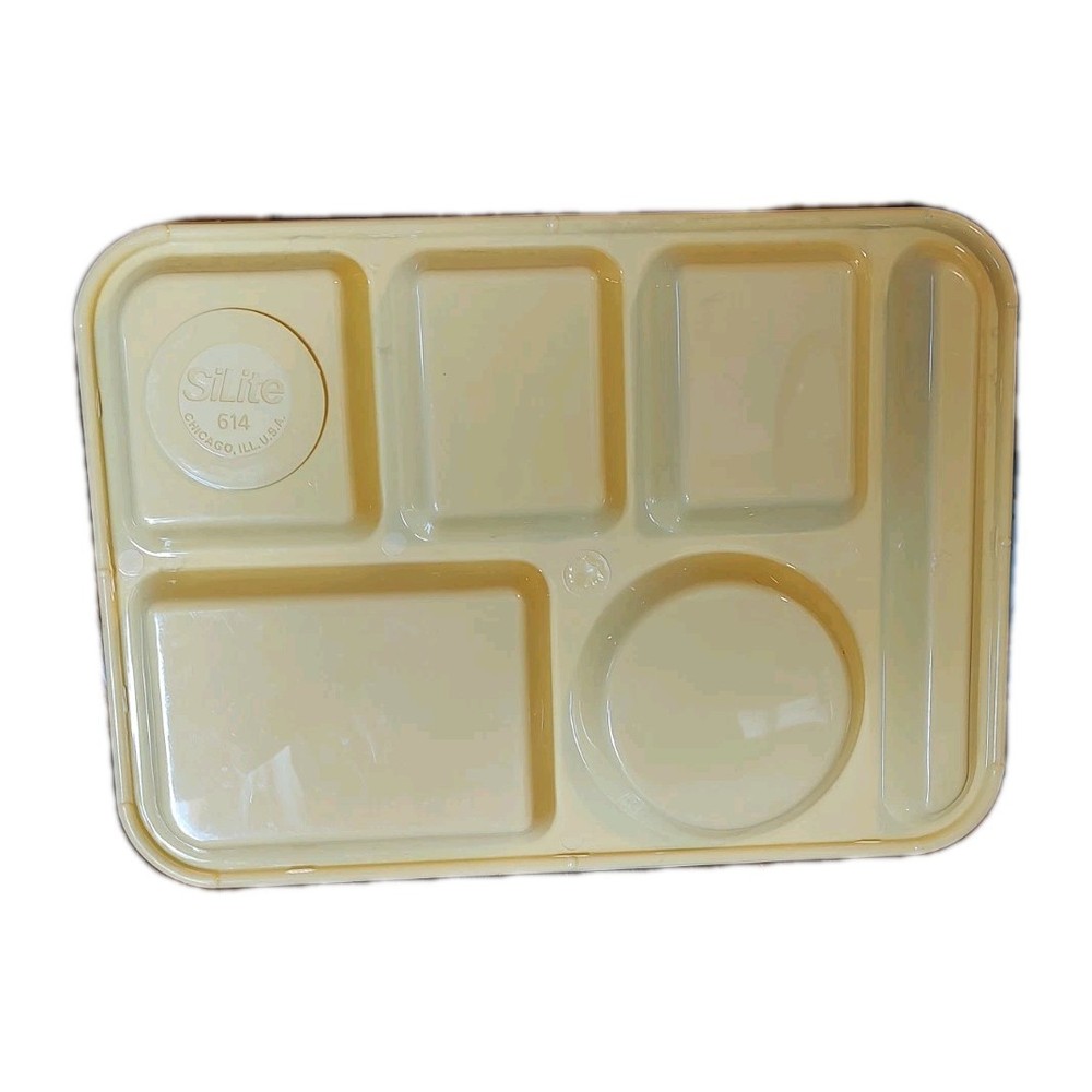 Theme:SchoolMPN:NAColor:YellowNumber of Compartments:6Brand:SiLiteNumber of Items in Set:3Style:CafeteriaItem Length:14 inShape:RectangleSize:MediumItem Width:10 inFinish:SmoothCustom Bundle:NoMaterial:PlasticPattern:SolidFeatures:Dishwasher Safe, TrayType:Cafeteria TrayPersonalized:NoCountry/Region of Manufacture:United States