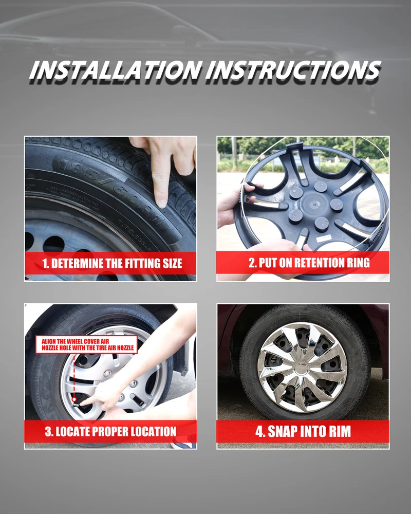 Home Payment Shipping Return Policy About Us Contact Us Feedback Title Other Car Refrigerator Front Bumper Rear Bumper Fender Flares Inner Fenders Side Steps Running Board A-Pillar Light Mount Brackets Headlights For Ford For Dodge For Chevrolet For Toyota For Mitsubishi Taillights For Chevrolet For Toyota For Ford For Jeep For Dodge For Honda For Nissan For Cadillac Fog Lights For Jeep For Dodge For Chrysler For Ford For Toyota For Chevrolet For Nissan For Lexus For GMC For Cadillac For BMW For Mercedes Benz LED Headlights For Ford For Dodge For Chevrolet For Toyota LED Taillights For Toyota For Chevrolet For Ford For Jeep For GMC For Honda For Cadillac LED Fog Lights For Toyota For Ford For Chevrolet For Mercedes Benz Jeep Headlights Tail Lights Fog Lights Refrigerator Bumper Fender Flares Inner Fenders A Pillar Light Mount Brackets Side Step More Chevrolet Headlights Tail Lights Fog Lights Refrigerator Bumper Ford Headlights Tail Lights Fog Lights Refrigerator Bumper Toyota Headlights Tail Lights Fog Lights Refrigerator Bumper Dodge Headlights Tail Lights Fog Lights Refrigerator Bumper GMC Headlights Tail Lights Fog Lights Refrigerator Bumper Item Features ❗❗ PERFECT FIT: This wheel hub cap is specifically designed to perfectly fit for 17-inch wheels, ensuring a seamless match and enhanced aesthetics. It complements the overall design of the vehicle, elevating its visual appeal. ❗❗ HIGH-QUALITY MATERIAL: Constructed from high-quality materials, this wheel hub cap guarantees durability and longevity. It withstands various road conditions and environmental factors encountered during daily driving, maintaining its pristine condition. ❗❗ EASY INSTALLATION: Installing this wheel hub cap is a breeze and requires no specialized tools or modifications. It comes with a user-friendly system, allowing for a hassle-free installation process by following the provided instructions. ❗❗ PROTECTIVE FUNCTION: Besides its aesthetic appeal, this wheel hub cap serves as a protective barrier for the wheels. It prevents scratches and potential damage caused by stones, debris, or other objects, safeguarding the wheel's surface. ❗❗ AFTER-SALES SERVICE: If There Is a Loss of Product Parts, or Any Parts of The Problem, We Can Provide After-Sales Service, Please Contact Us on The Order Page. Item Specification ❗❗ Type: Hub caps ❗❗ Number in Pack: 4 ❗❗ Color: Chrome ❗❗ Material: ABS ❗❗ Compatible Wheel Diameter: 17 in ❗❗ Finish: Glossy ❗❗ Installation Type: Snap-On ❗❗ Model: Universal Hubcap for Iron Wheels, Not fit for Chevy Equinox All Models, TOYOTA SIENNA 17 inch models, VOLKSWAGEN GOLF 17 inch models Not fit for 2010-2011 Fusion, 2013-2018 Toyota RAV4, 2010-2011 Mercury Milan, 2008-2012 Chevy Malibu, 2007-2010 Pontiac G6, 2007-2010 Saturn Aura, 2007-2010 Saturn Aura Hybrid, 2013-2020 DODGE JOURNEY, 2015-2020 DODGE GRAND CARAVAN, 2011-2016 CHRYSLER TOWN & COUNTRY. Item Package ❗❗ 1 Set of 4 Hub caps and 4 retention rings <img src="https://ti2.auctiva.com/web/aswCredit.gif" border="0"><br><a href="https://ebaybusinessbuilder.com/listing-tools/#ebay-only-listing-tools" target="_blank"><img src="https://ti2.auctiva.com/images/sc1line2.gif" border="0"></a> Payment Delivery details Terms of sales About us Contact us Payment We accept PayPal, credit card , Apple Pay & Google Pay etc. Delivery details All items will be shipped within 1-3 business days after payment received, we will try our best to ship out as soon as we can, hope for your understanding. Please double confirm your address and contact information, which will help the delivery faster and more accurately. Note :buyers who purchase international products need to pay import tariffs!!! Terms of sales Professional installation is highly recommended. Any problem of the item please feel free to contact us first , please D o Not leave negative feedback before that, or simply return it within 60 Days in original condition. We will resolve it for you ASAP. About us Any questions please do not hesitate to contact us directly by eBay message . We will reply you within 24 hours asap, thanks for your understanding. Contact us Should you have any problem or require any further information please feel free to contact us . If you are satisfied with our product and service, please kindly leave us a positive feedback. On Feb 8, 2025 at 01:15:50 PST, seller added the following information: