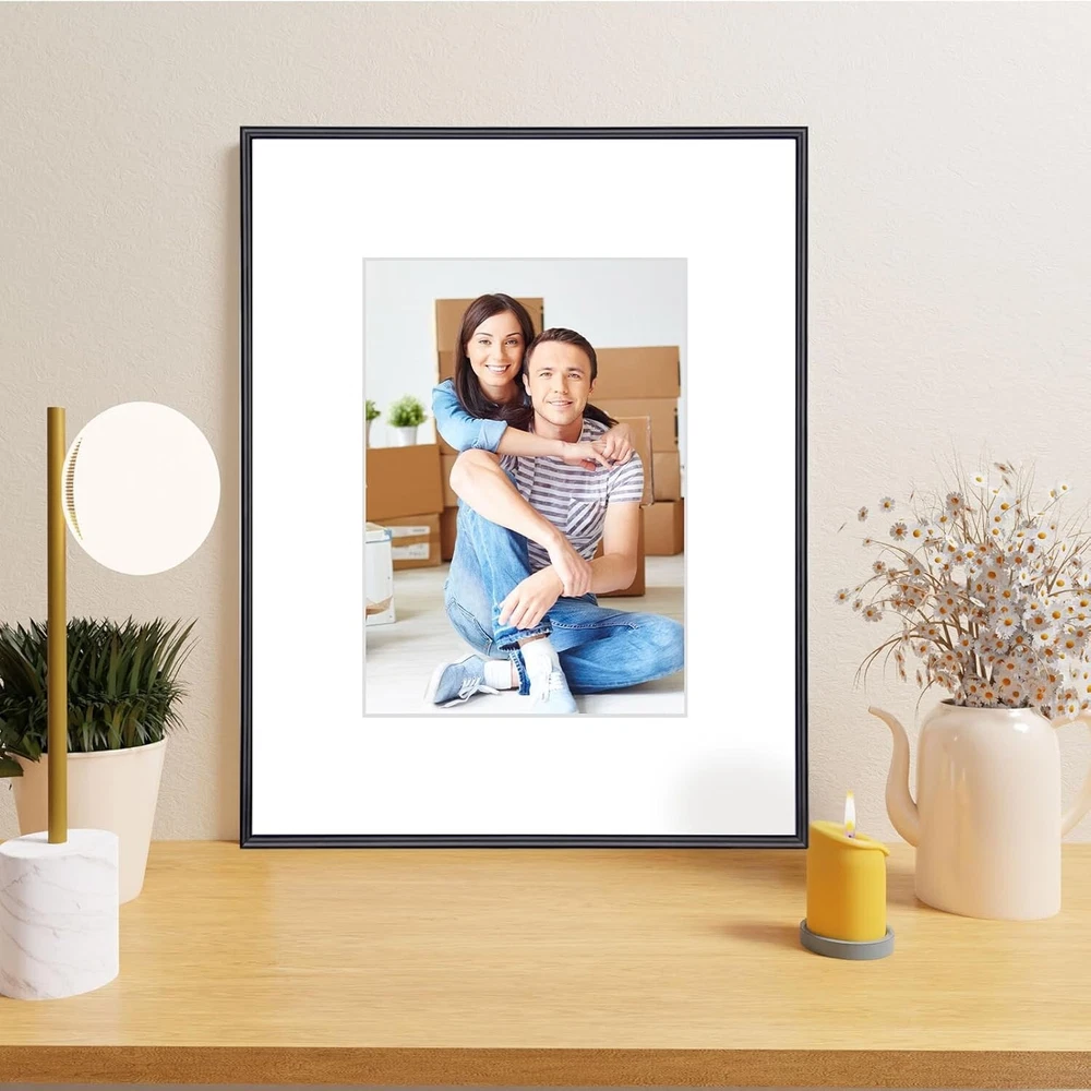 Set of 4 Black Modern 12x16 Picture Frames with Mat for Stylish Displays