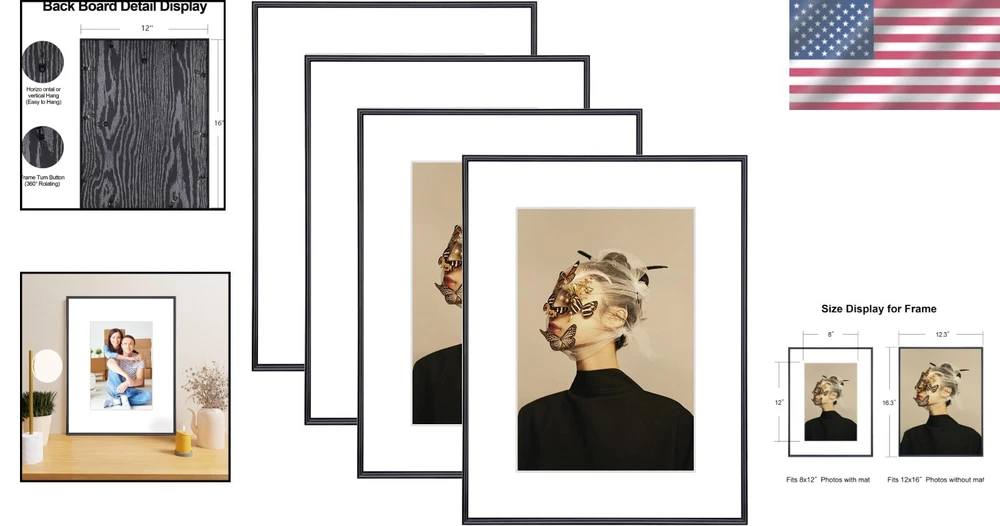 Features: None, Matted, Lightweight Orientation: Portrait Finish Type: Semi-gloss Glass Type: None Item Width: Picture Frame Set Cover Material: Metal Additional Features: Lightweight Box Frame Depth: Less Than 0.25 in Product Dimensions: 7"l X 5"w UPC: Does Not Apply Mounting: Wall Mounted Shape: Rectangle Brand: Unbranded Frame Type: Flat Mounting Type: Wall Mount Color: Black Occasion: Mother's Day Size: 12 x 16 in Item Height: Picture Frame Set Photo Capacity: 4 Occasion Type: Mother's Day, Grandparents Day Department: Adults Number Of Items: 4 gtin13: Does Not Apply Type: Frame Set Power Source: None Item Shape: Rectangular Personalize: No Item Length: Picture Frame Set Photo Insertion Type: Rear-Loading Suitable for Photo Size: 12 x 16 in Era: Unknown Style: Arts & Crafts Finish: Semi-Gloss Item Dimensions L X W: 7"l X 5"w Target Audience: Adult Item Weight: Lightweight Material: Aluminum Finish Types: Semi-gloss Frame Material: Metal